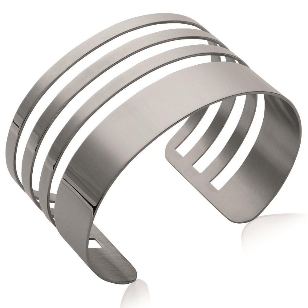 Description Bracelet manchette rigide en acier argenté. Largeur 38 mm Diamètre 66 mm [Guide des tailles] Matière(s) Acier . L'acier utilisé dans la bijouterie existe sous plusieurs qualités. Nous utilisons principalement la qualité 316L, qualité qui est utilisée en chirurgie. Cet acier est donc inoxydable et reste très résistant. Fermoir Aucun Couleur(s) dominante(s) Argenté Public Adulte . Genre Femme . Saison Indémodable . Cliquez sur une matière, un thème, une couleur ou une collection pour voir tous les articles associés.