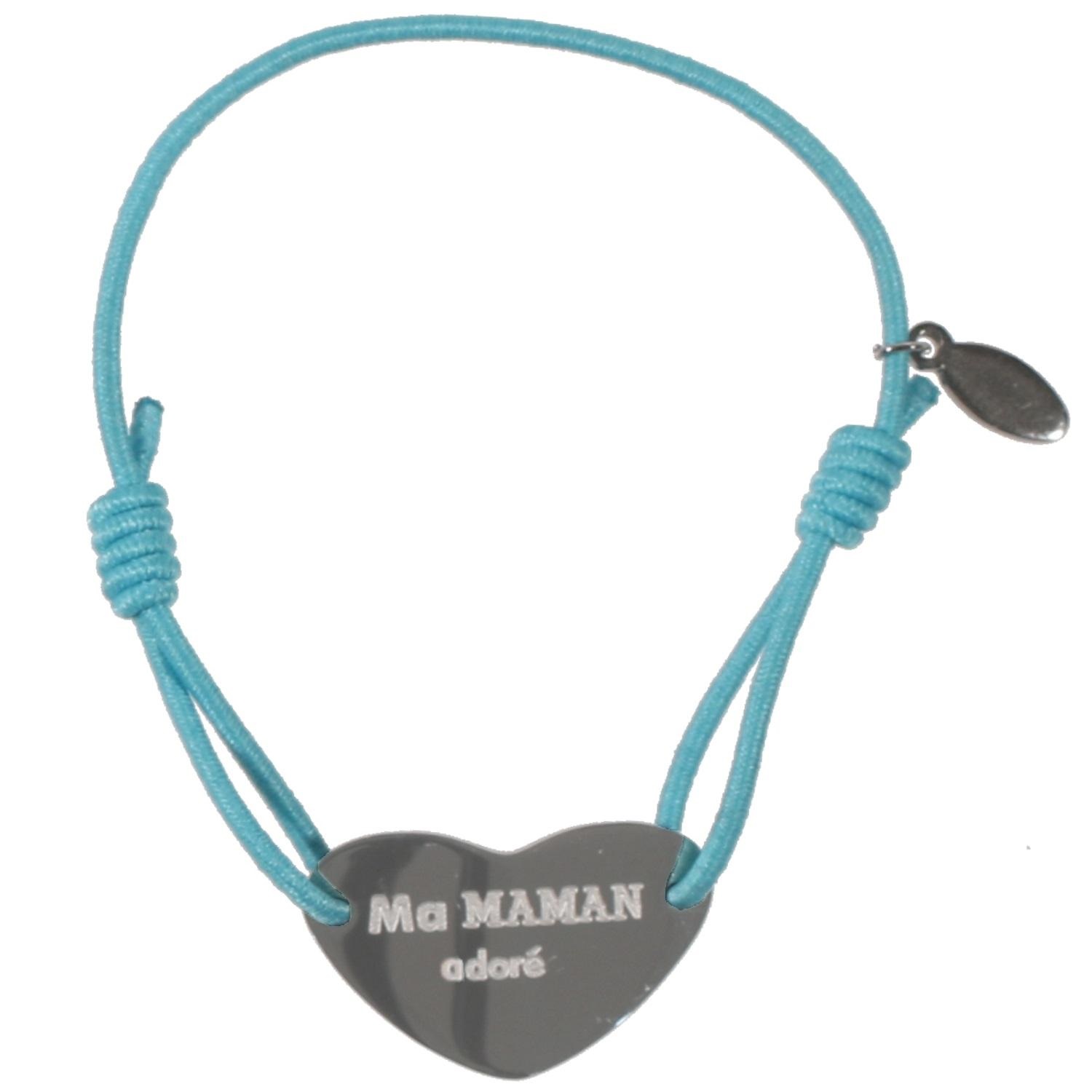 Bracelet élastique "Ma maman adorée" en acier et coton.