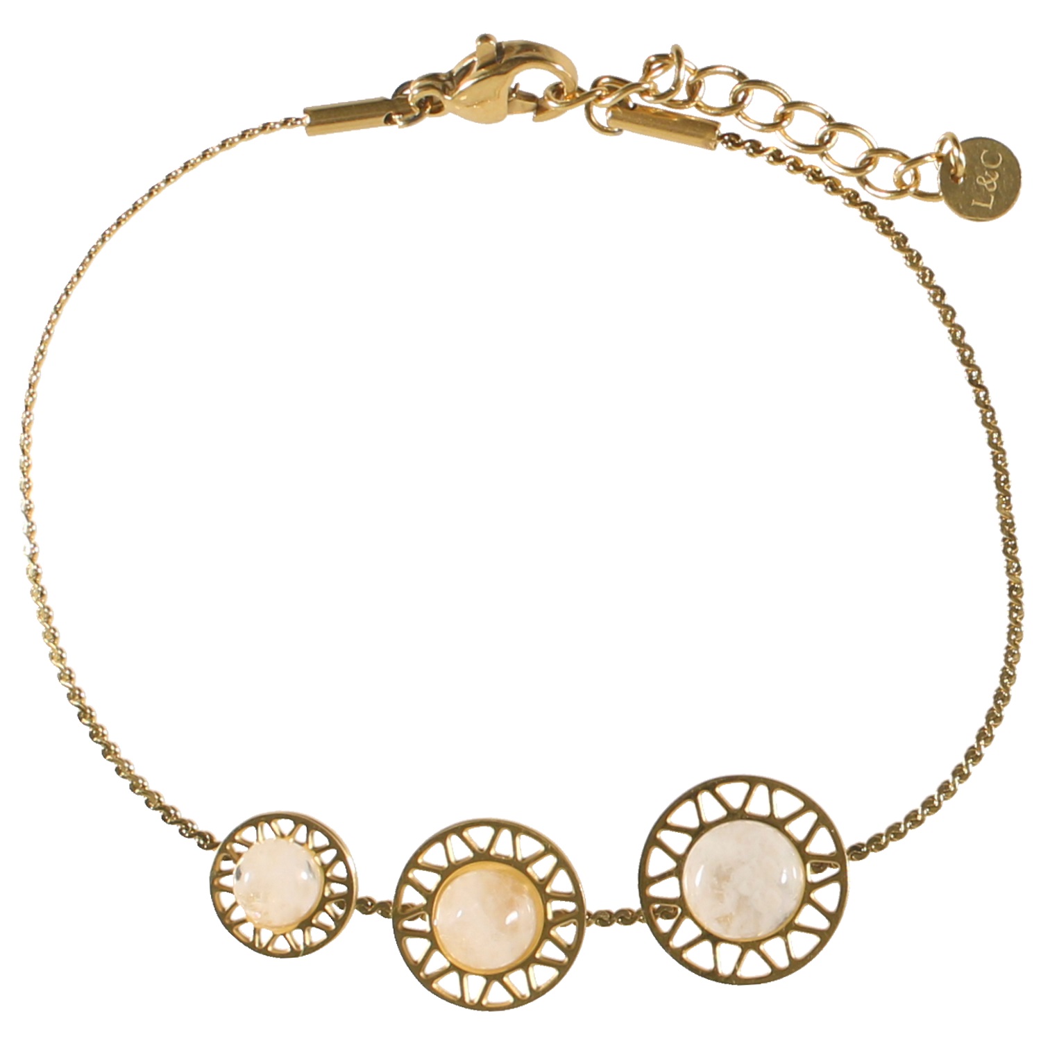 Description Bracelet avec 3 médaillons au motifs ajourés en acier doré surmontés de pierres de couleur. Fermoir mousqueton avec 2.5 cm de rallonge. Longueur 17+2.5 cm [Guide des tailles] Largeur 13 mm Matière(s) Acier , Rocaille . L'acier utilisé dans la bijouterie existe sous plusieurs qualités. Nous utilisons principalement la qualité 316L, qualité qui est utilisée en chirurgie. Cet acier est donc inoxydable et reste très résistant. Fermoir Mousqueton Couleur(s) dominante(s) Blanc , Doré Public Adolescent , Adulte . Genre Femme , Fille . Saison Indémodable . Cliquez sur une matière, un thème, une couleur ou une collection pour voir tous les articles associés.