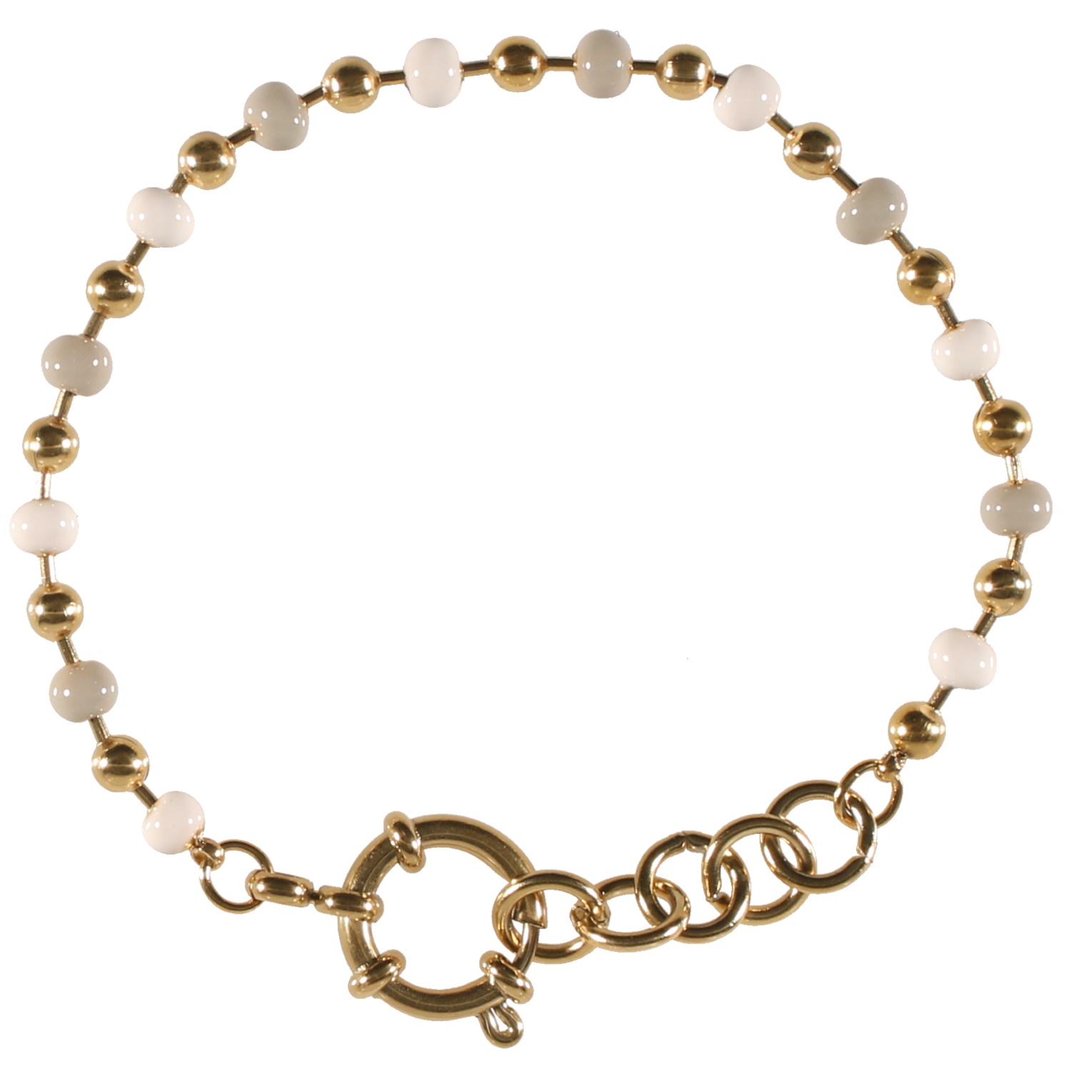 Description Bracelet composé de perles en acier doré et perles en émail de couleur grise et blanche. Fermoir bouée avec 2 cm de rallonge. Longueur 17+2 cm [Guide des tailles] Largeur 14 mm Matière(s) Acier , Email . L'acier utilisé dans la bijouterie existe sous plusieurs qualités. Nous utilisons principalement la qualité 316L, qualité qui est utilisée en chirurgie. Cet acier est donc inoxydable et reste très résistant. Fermoir Bouée Couleur(s) dominante(s) Blanc , Doré , Gris Public Adolescent , Adulte . Genre Femme , Fille . Saison Indémodable . Cliquez sur une matière, un thème, une couleur ou une collection pour voir tous les articles associés.