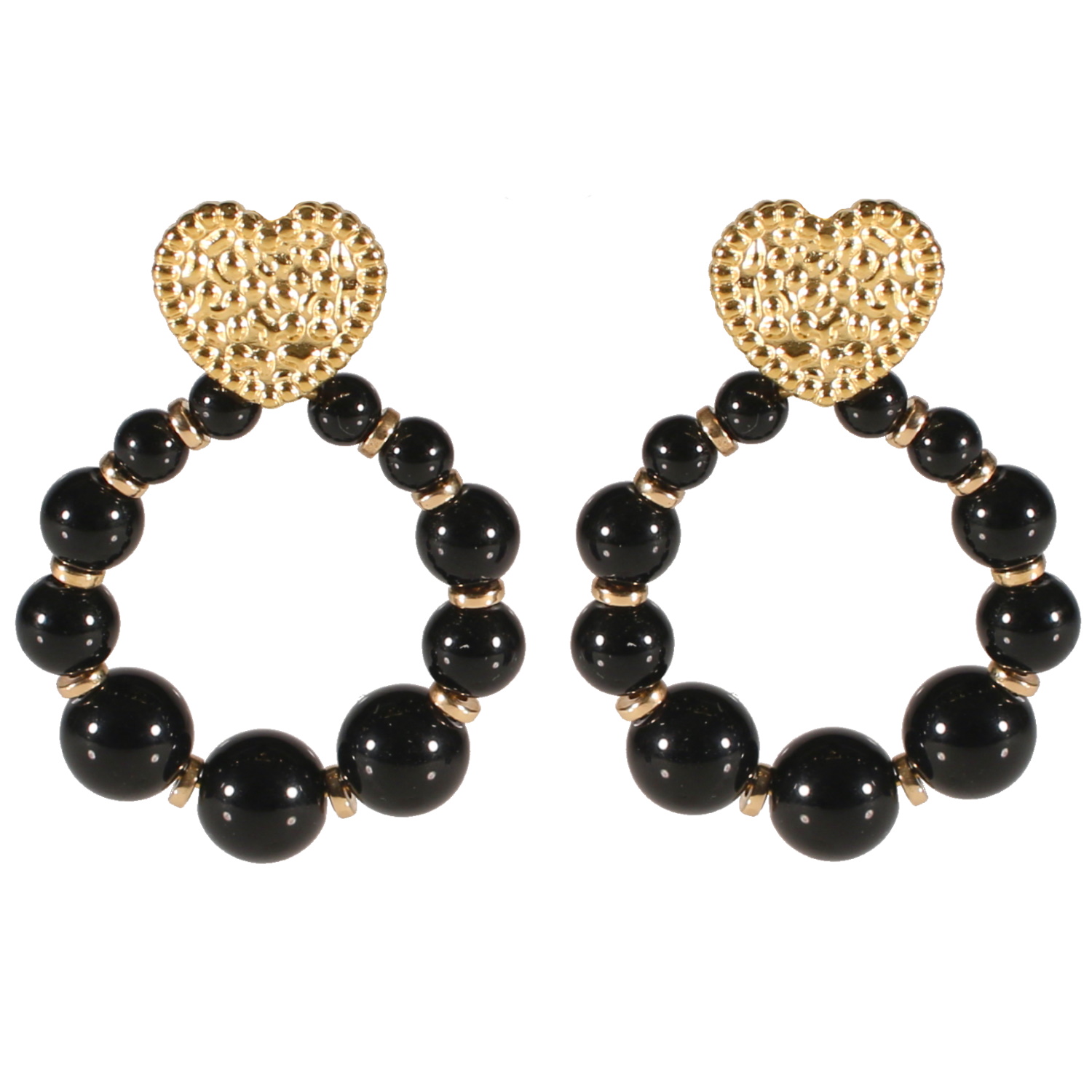 Description Boucles d'oreilles pendantes composées d'un cœur martelé en acier doré et un cercle ovale de perles de couleur noire. Largeur 30 mm Hauteur 43 mm Matière(s) Acier , Rocaille . L'acier utilisé dans la bijouterie existe sous plusieurs qualités. Nous utilisons principalement la qualité 316L, qualité qui est utilisée en chirurgie. Cet acier est donc inoxydable et reste très résistant. Fermoir Tiges poussettes Couleur(s) dominante(s) Doré , Noir Public Adolescent , Adulte . Genre Femme , Fille . Saison Eté . Thème(s) Amour . Cliquez sur une matière, un thème, une couleur ou une collection pour voir tous les articles associés.