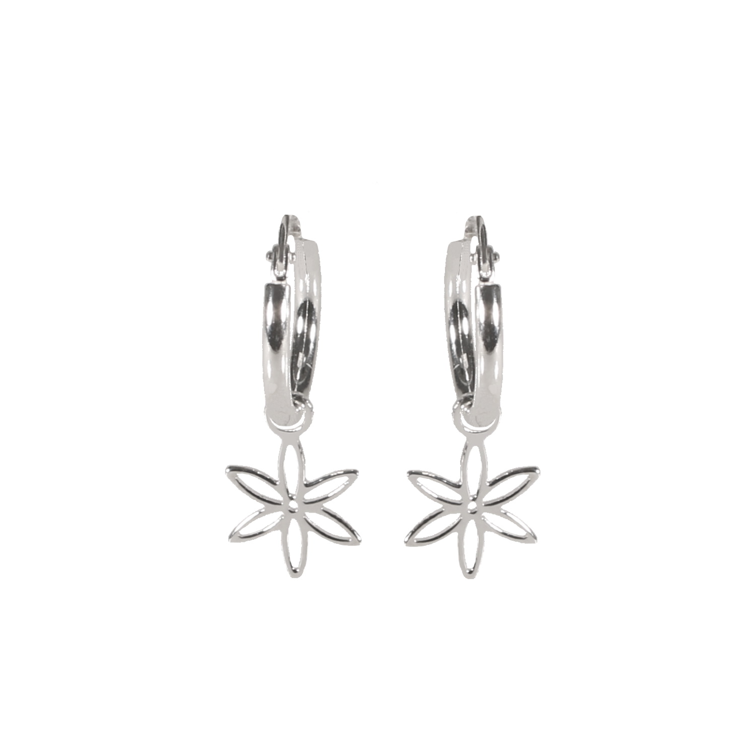 Boucles d'oreilles créoles avec pendant fleur en argent 925/000.