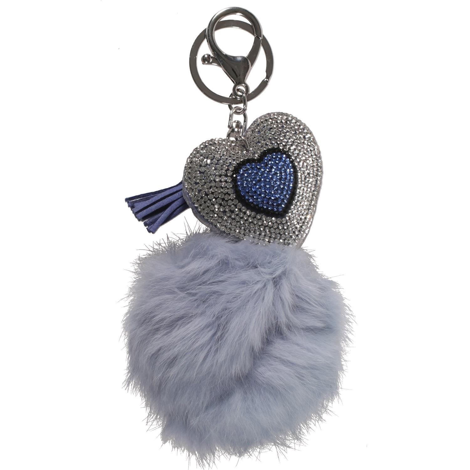 Porte-clés fantaisie en métal argenté, cristaux synthétiques et textile.