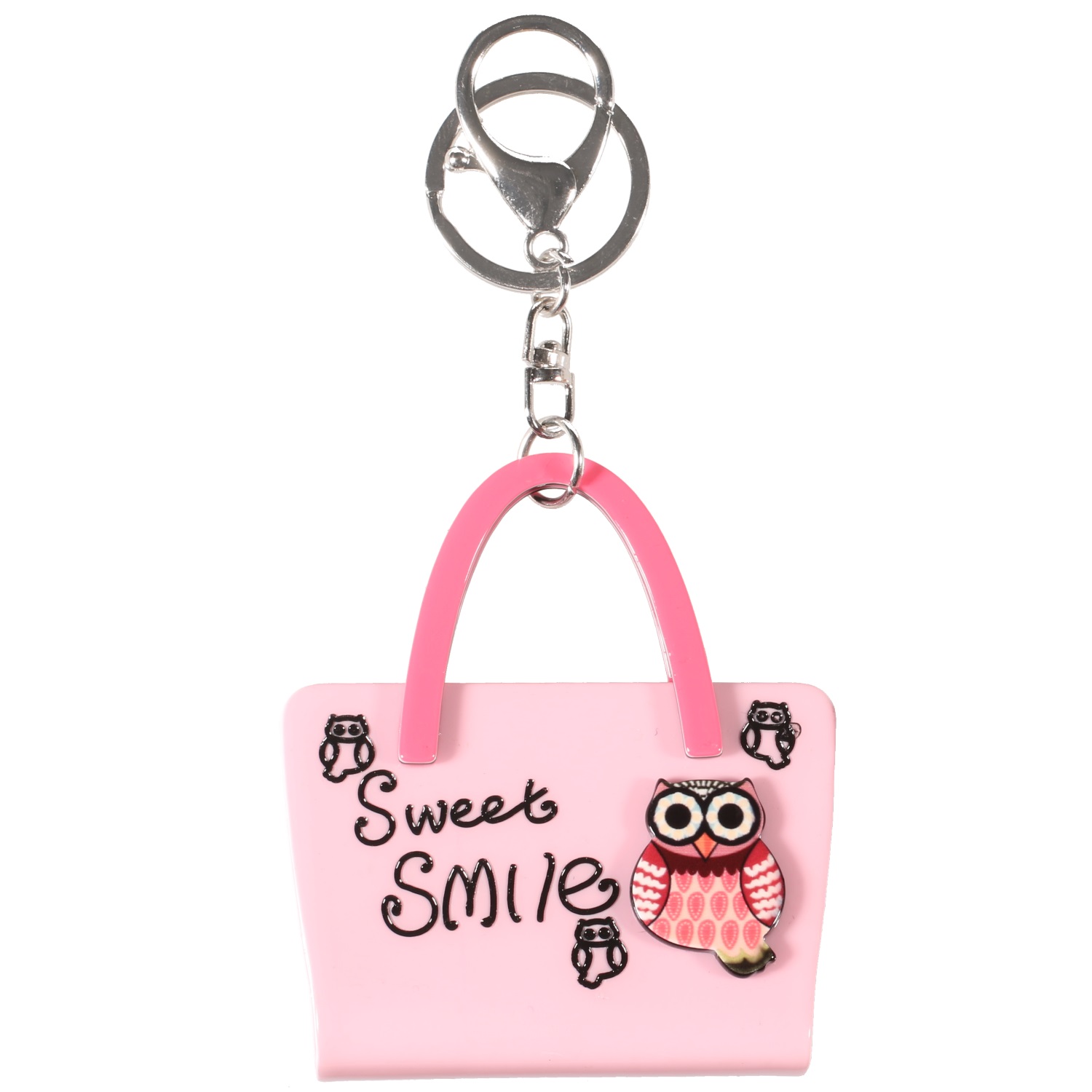 Porte-clés en métal argenté et plastique.