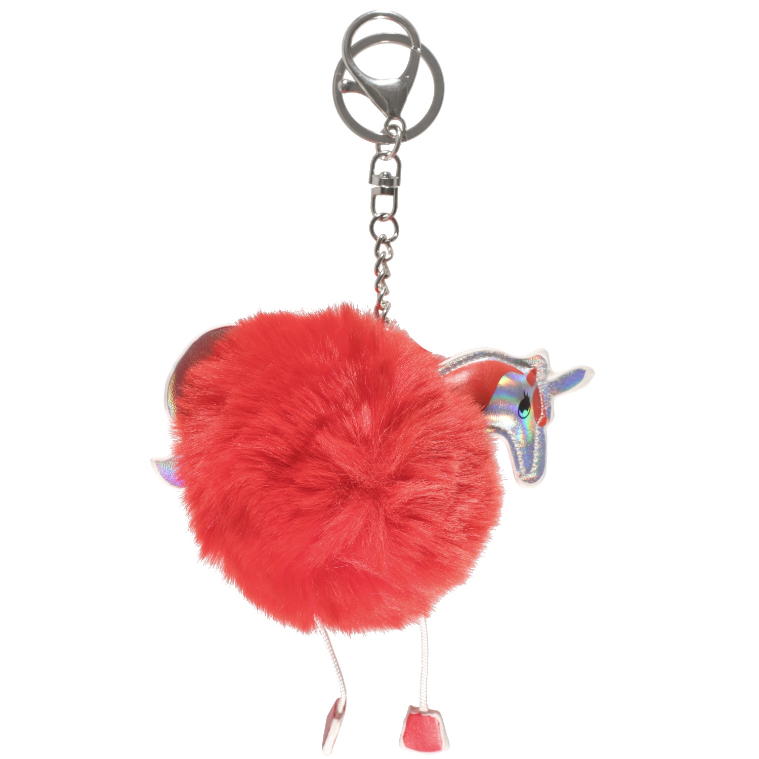 Porte-clés fantaisie Licorne en métal argenté, polyuréthane et textile.