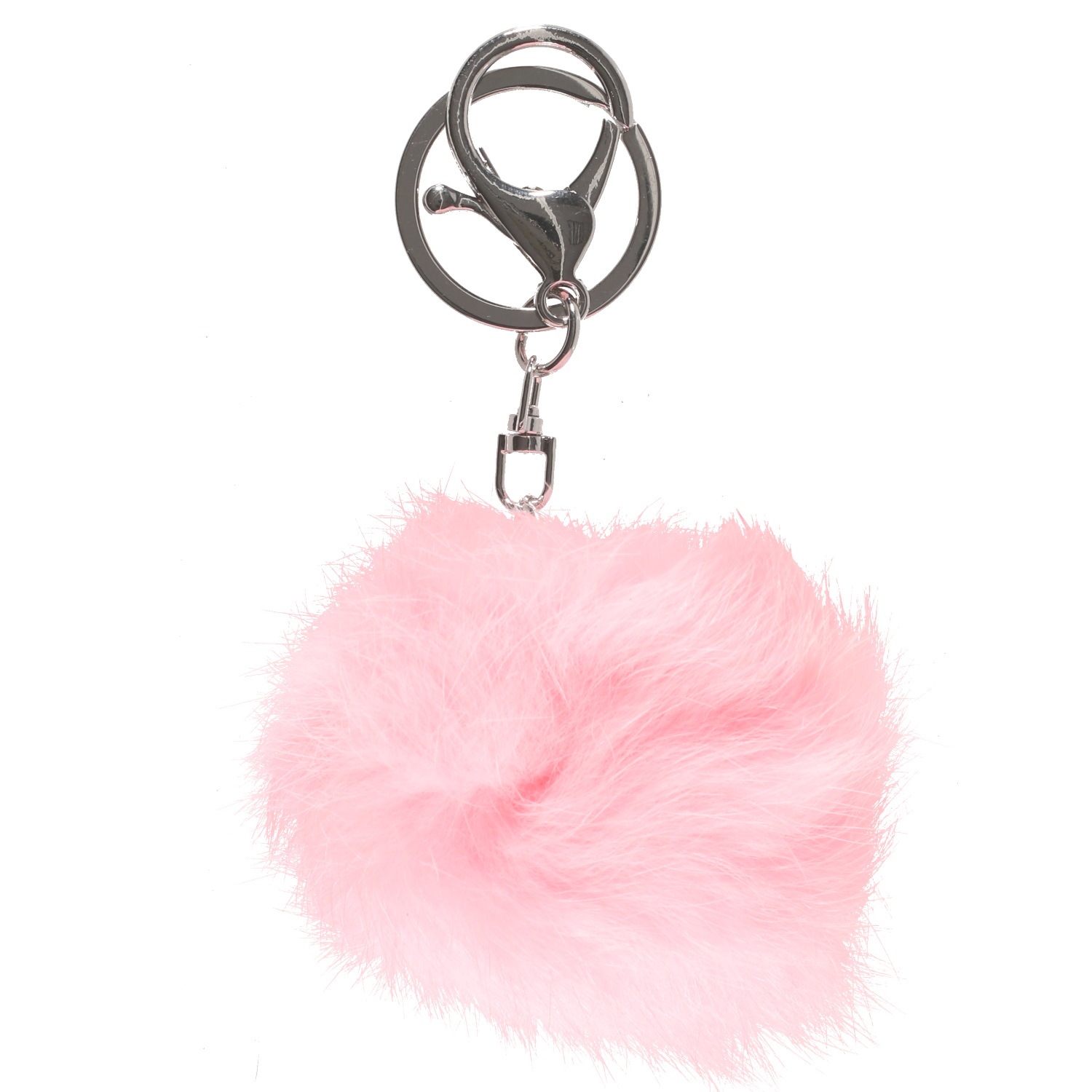 Porte-clés fantaisie en métal argenté et pompon en textile.