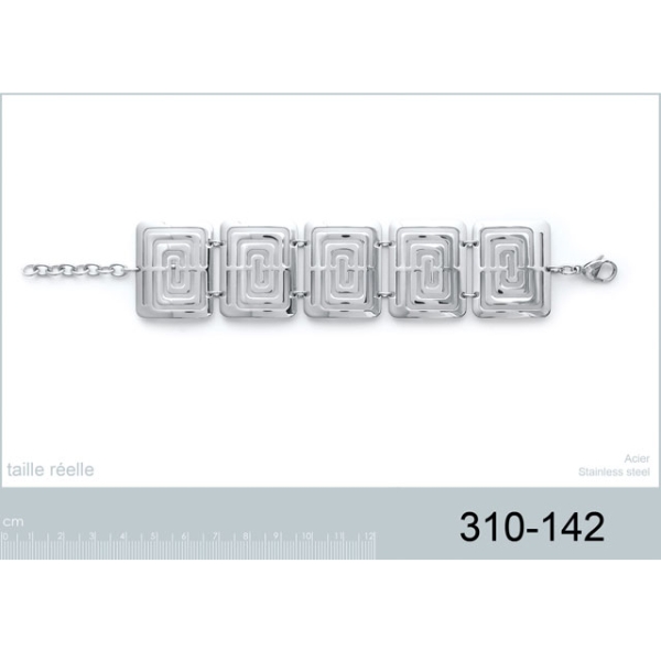 Description Bracelet en acier. Longueur 19 cm [Guide des tailles] Largeur 30 mm Matière(s) Acier . L'acier utilisé dans la bijouterie existe sous plusieurs qualités. Nous utilisons principalement la qualité 316L, qualité qui est utilisée en chirurgie. Cet acier est donc inoxydable et reste très résistant. Fermoir Mousqueton Couleur(s) dominante(s) Argenté Public Adulte . Genre Femme . Saison Indémodable . Rayon en magasin T64 Cliquez sur une matière, un thème, une couleur ou une collection pour voir tous les articles associés.