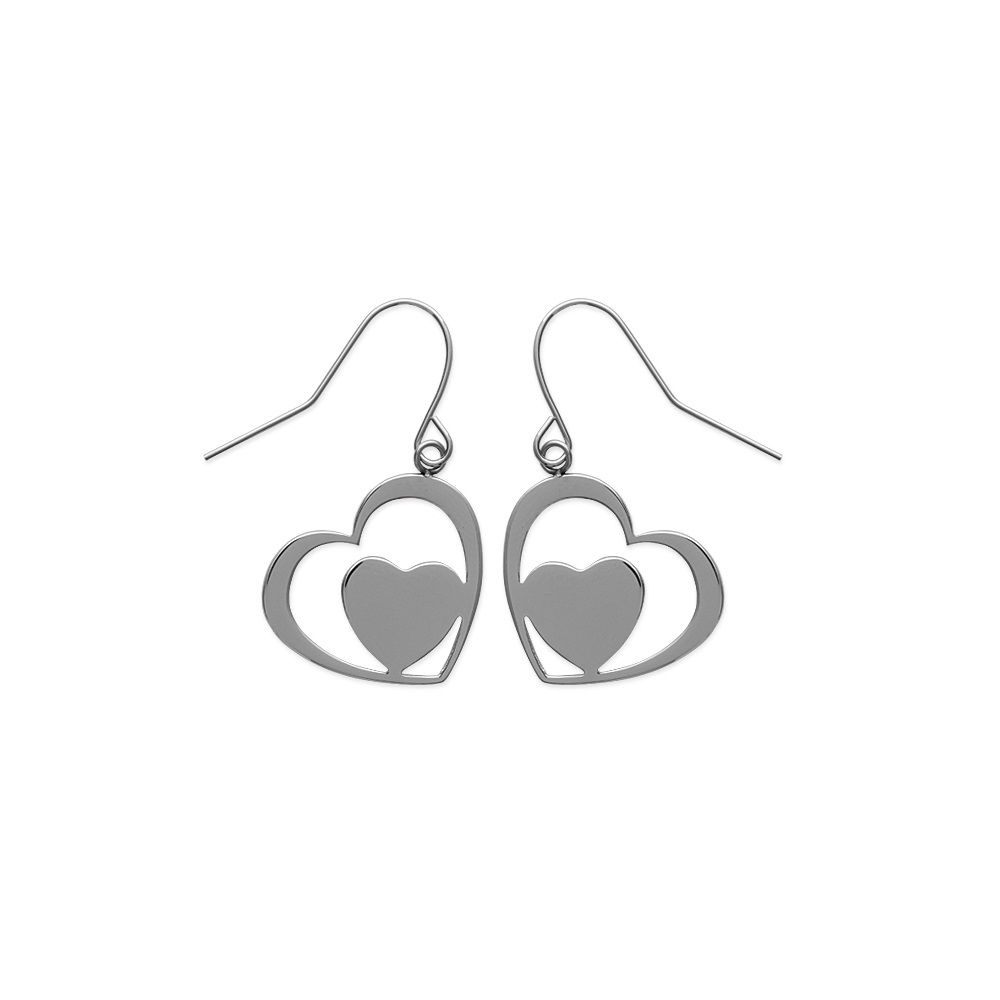 Description Boucles d'oreilles en acier. Largeur 17 mm Hauteur 32 mm Matière(s) Acier . L'acier utilisé dans la bijouterie existe sous plusieurs qualités. Nous utilisons principalement la qualité 316L, qualité qui est utilisée en chirurgie. Cet acier est donc inoxydable et reste très résistant. Fermoir Crochets Couleur(s) dominante(s) Argenté Public Adolescent , Adulte . Genre Femme , Fille . Saison Indémodable . Thème(s) Amour . Cliquez sur une matière, un thème, une couleur ou une collection pour voir tous les articles associés.