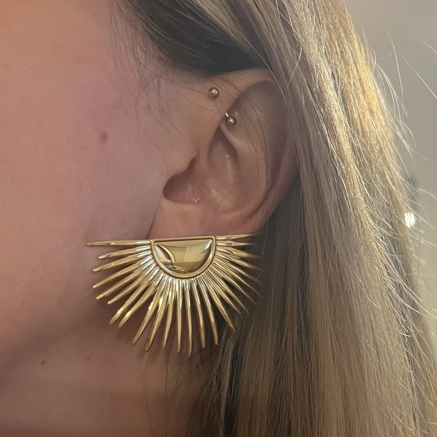 Description Boucles d'oreilles pendantes en forme de fleur en acier doré. Largeur 50 mm Hauteur 30 mm Matière(s) Acier . L'acier utilisé dans la bijouterie existe sous plusieurs qualités. Nous utilisons principalement la qualité 316L, qualité qui est utilisée en chirurgie. Cet acier est donc inoxydable et reste très résistant. Fermoir Tiges poussettes Couleur(s) dominante(s) Doré Public Adolescent , Adulte . Genre Femme , Fille . Saison Indémodable . Thème(s) Fleurs , Nature . Cliquez sur une matière, un thème, une couleur ou une collection pour voir tous les articles associés.