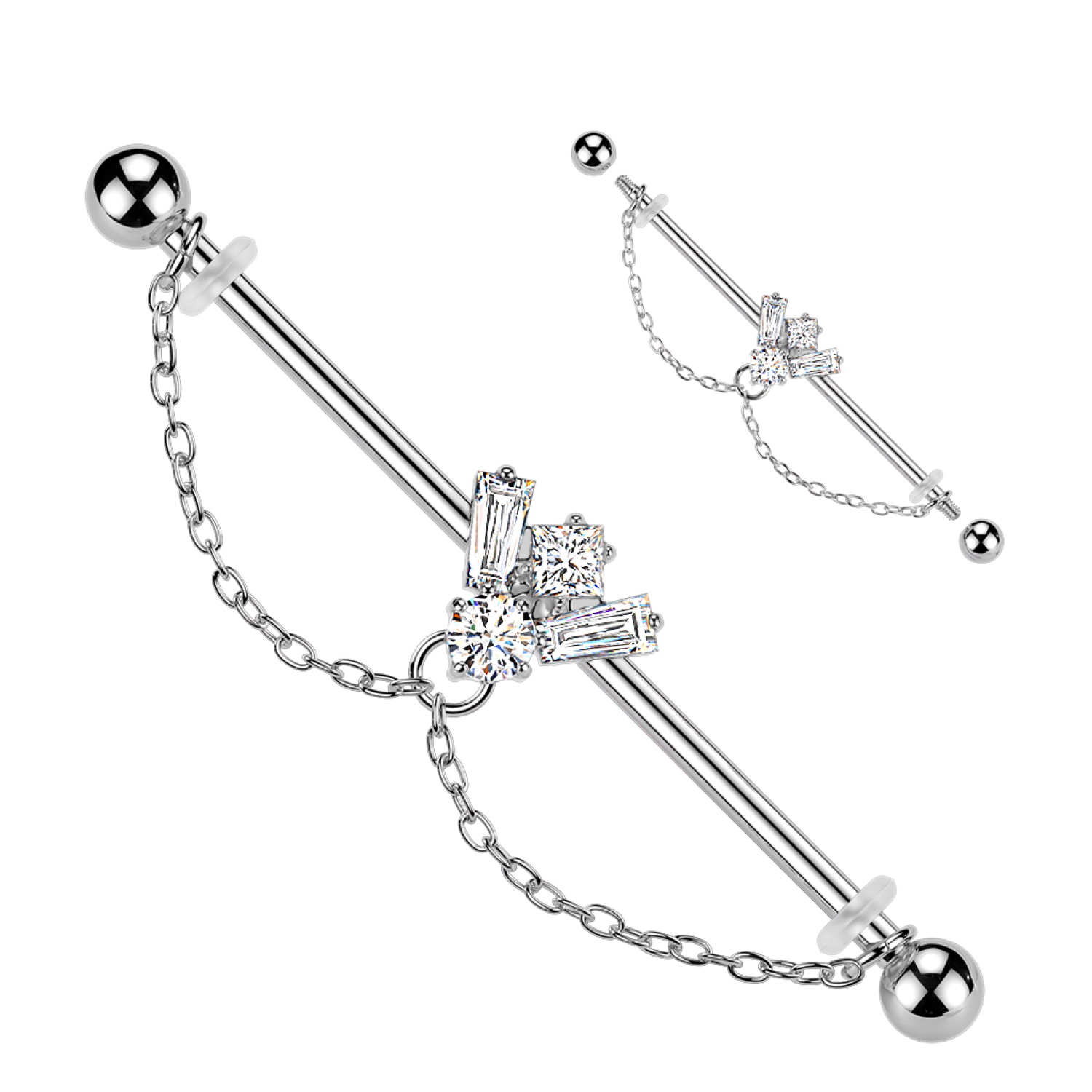 Description Piercing haltère avec une chaîne en acier chirurgical 316L argenté et une abeille sertie d'oxydes de zirconium blancs. Cliquez sur une matière, un thème, une couleur ou une collection pour voir tous les articles associés.