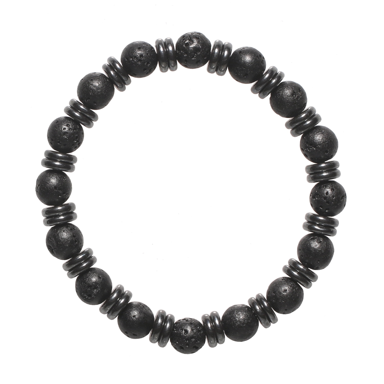 DescriptionBracelet fantaisie élastique composé de perles cylindriques en métal canon de fusil et de perles en pierre de lave.Cliquez sur une matière, un thème, une couleur ou une collection pour voir tous les articles associés.