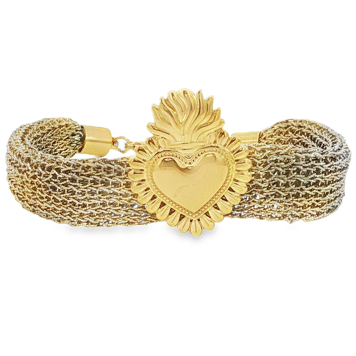 Description Sublime bracelet jonc en acier doré, finement ouvragé avec un motif de cœur sacré, symbole d'amour et de dévotion. Ce bijou d'exception apportera une touche de raffinement et de spiritualité à votre poignet, idéal pour compléter une tenue élégante ou à offrir comme gage d'affection. Fermoir mousqueton avec 3 cm de rallonge. Longueur 18+3 cm [Guide des tailles] Largeur 30 mm Matière(s) Acier , Textile . L'acier utilisé dans la bijouterie existe sous plusieurs qualités. Nous utilisons principalement la qualité 316L, qualité qui est utilisée en chirurgie. Cet acier est donc inoxydable et reste très résistant. Fermoir Mousqueton Couleur(s) dominante(s) Doré Public Adolescent , Adulte . Genre Femme , Fille . Saison Indémodable . Thème(s) Amour . Cliquez sur une matière, un thème, une couleur ou une collection pour voir tous les articles associés.