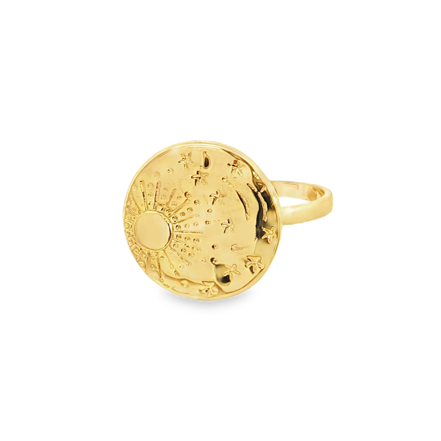 Description Arborez l'éclat céleste avec cette bague en métal doré, sublimée par un design astral gravé. Symbole d'élégance intemporelle et de mystère cosmique, elle rehausse votre style avec une touche d'originalité et de sophistication. Un bijou d'exception pour affirmer votre singularité. Taille ajustable.