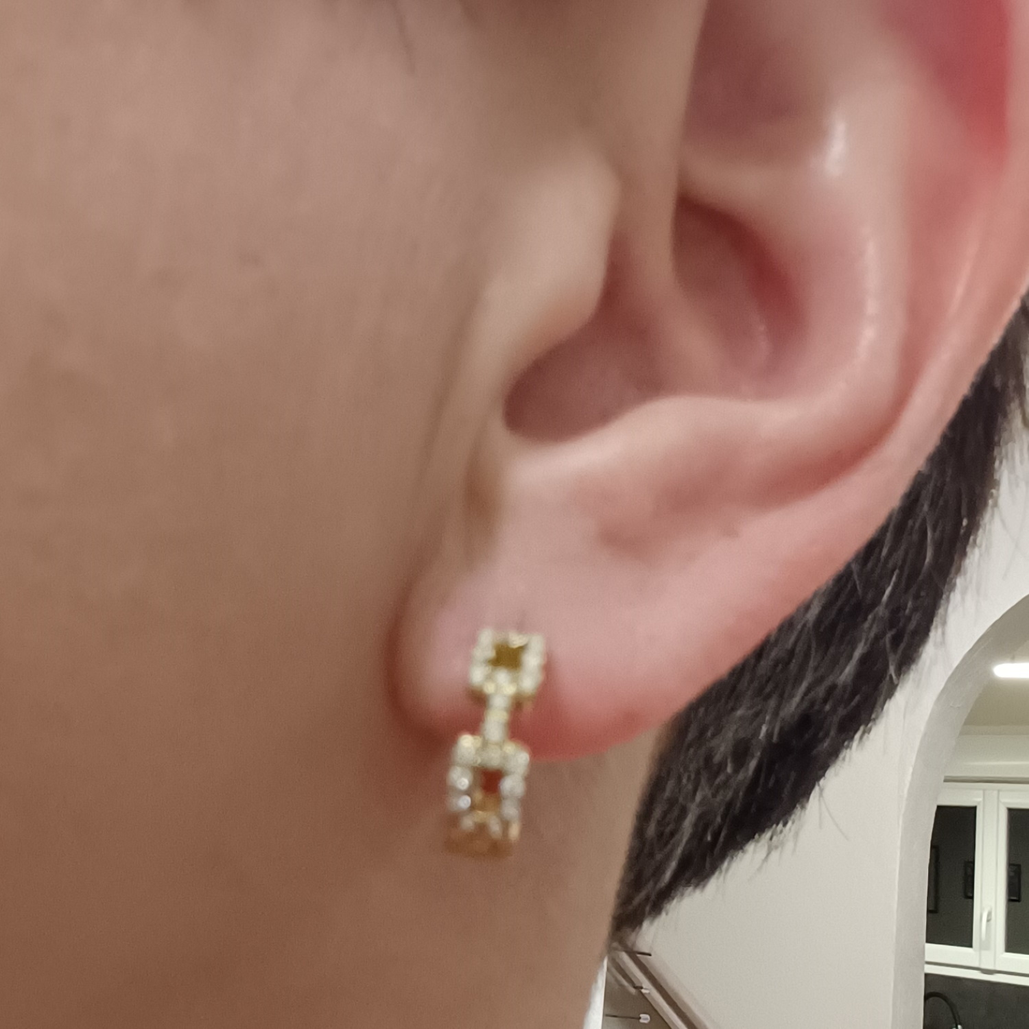 Chaque boucle est minutieusement sertie de strass ronds à taille brillant, capturant la lumière avec une clarté exceptionnelle.