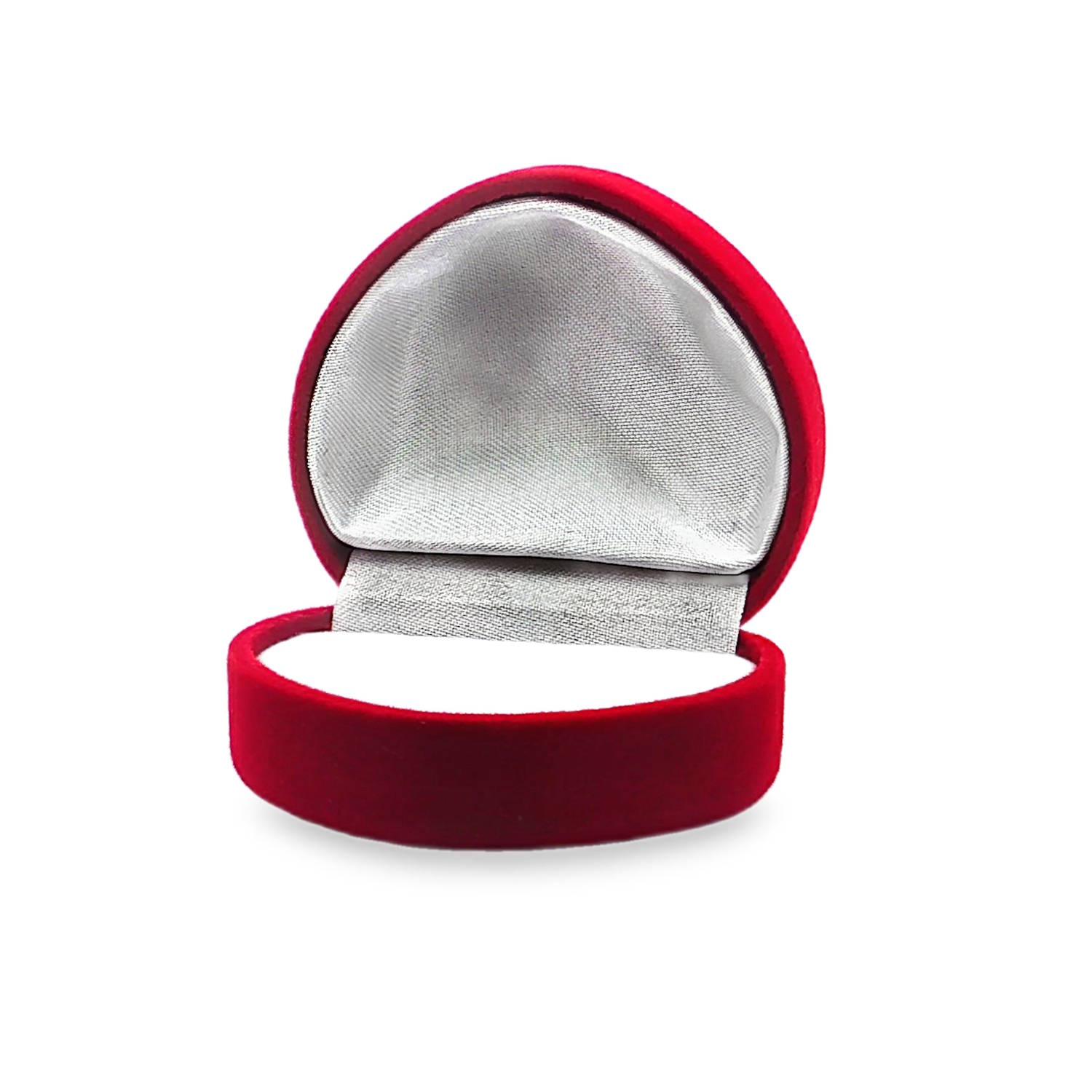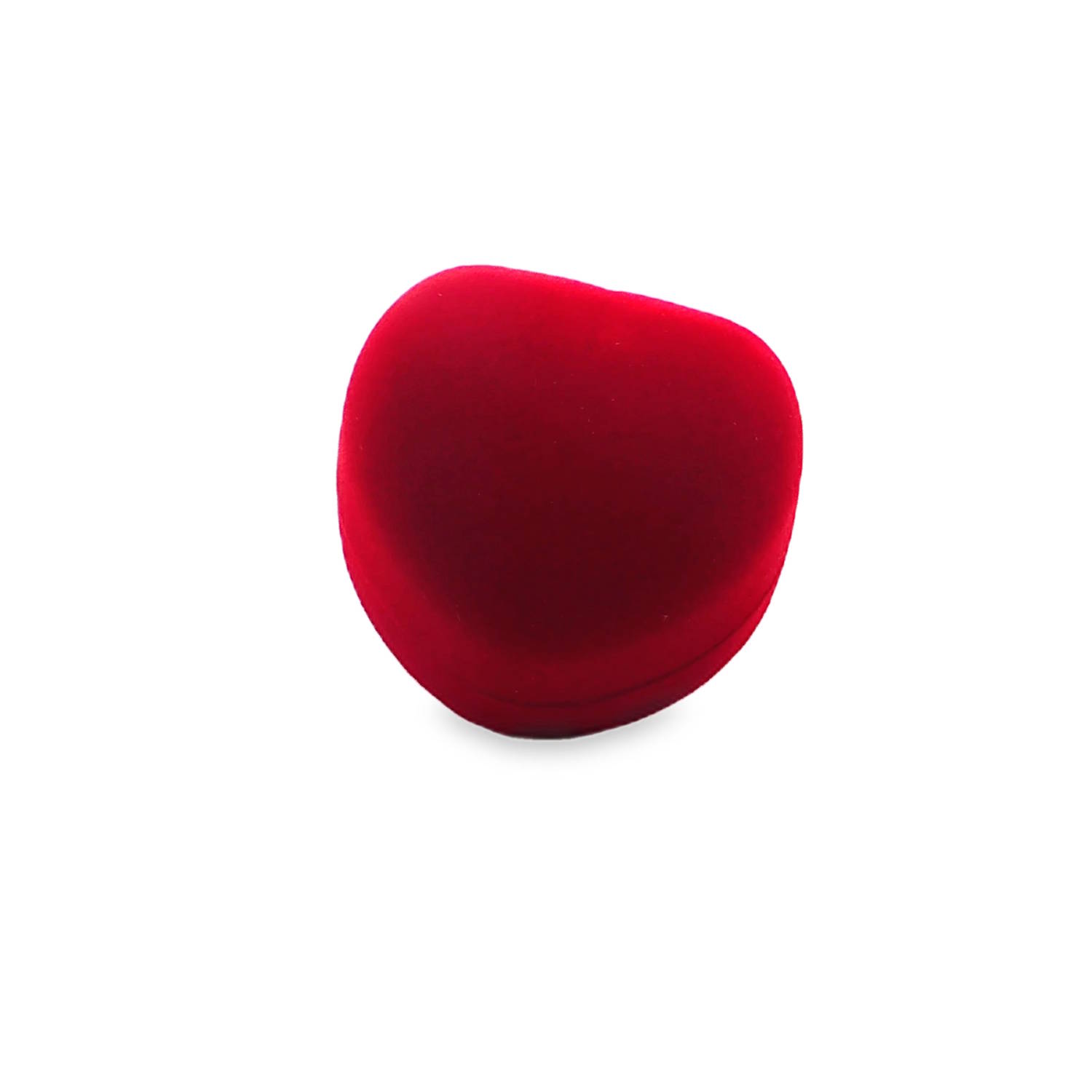 Écrin rouge en forme de cœur, parfait pour présenter un bijou précieux.
