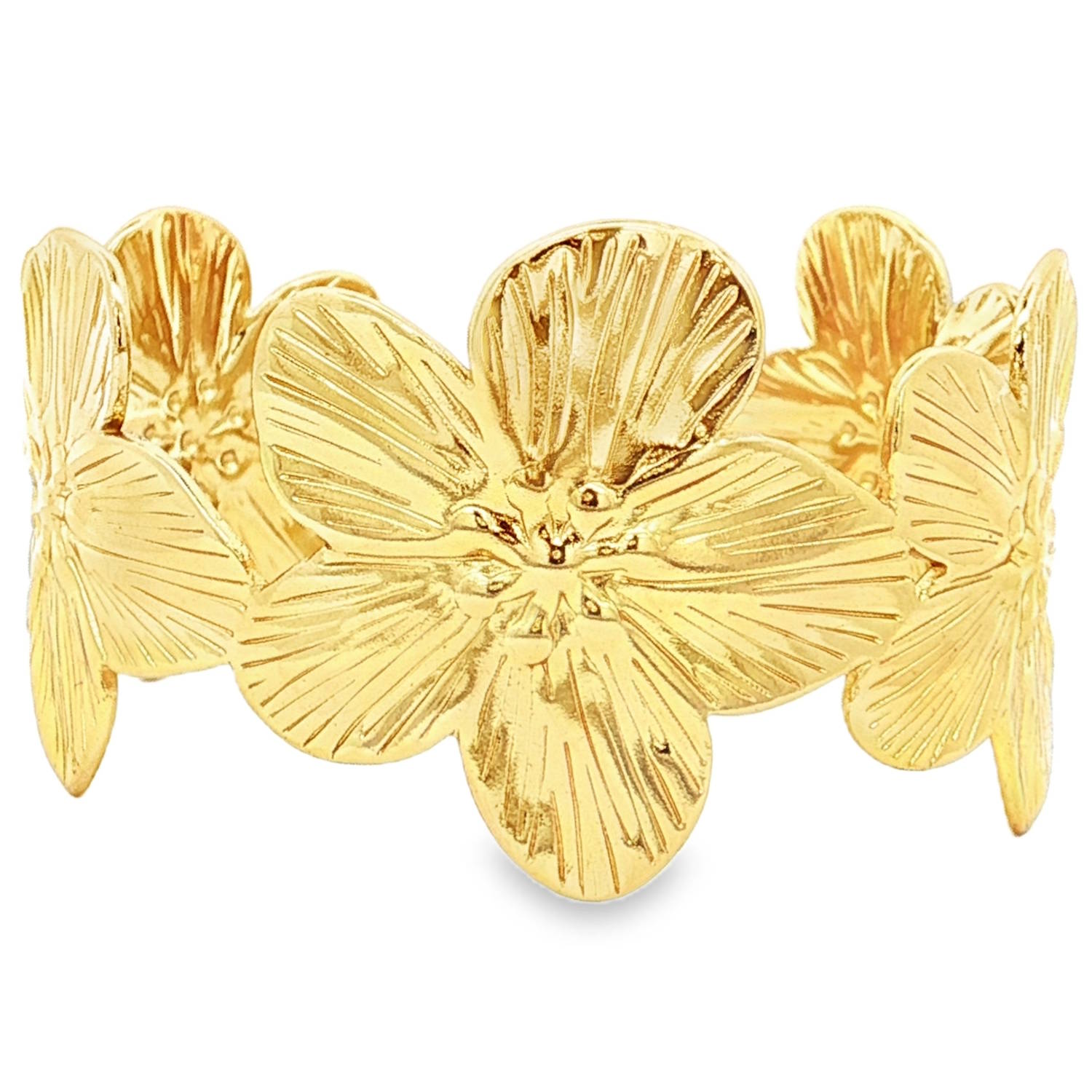 Description Ce magnifique bracelet jonc en acier doré capture l'essence de la féminité avec son design floral élaboré. Chaque fleur, façonnée avec une attention méticuleuse aux détails, apporte une touche de grâce et de sophistication. Un bijou luxueux, parfait pour ajouter une note d'éclat à votre tenue. Largeur 35 mm Diamètre 56 mm [Guide des tailles] Matière(s) Acier . L'acier utilisé dans la bijouterie existe sous plusieurs qualités. Nous utilisons principalement la qualité 316L, qualité qui est utilisée en chirurgie. Cet acier est donc inoxydable et reste très résistant. Fermoir Aucun Couleur(s) dominante(s) Doré Public Adolescent , Adulte . Genre Femme , Fille . Saison Indémodable . Thème(s) Fleurs , Nature . Cliquez sur une matière, un thème, une couleur ou une collection pour voir tous les articles associés.