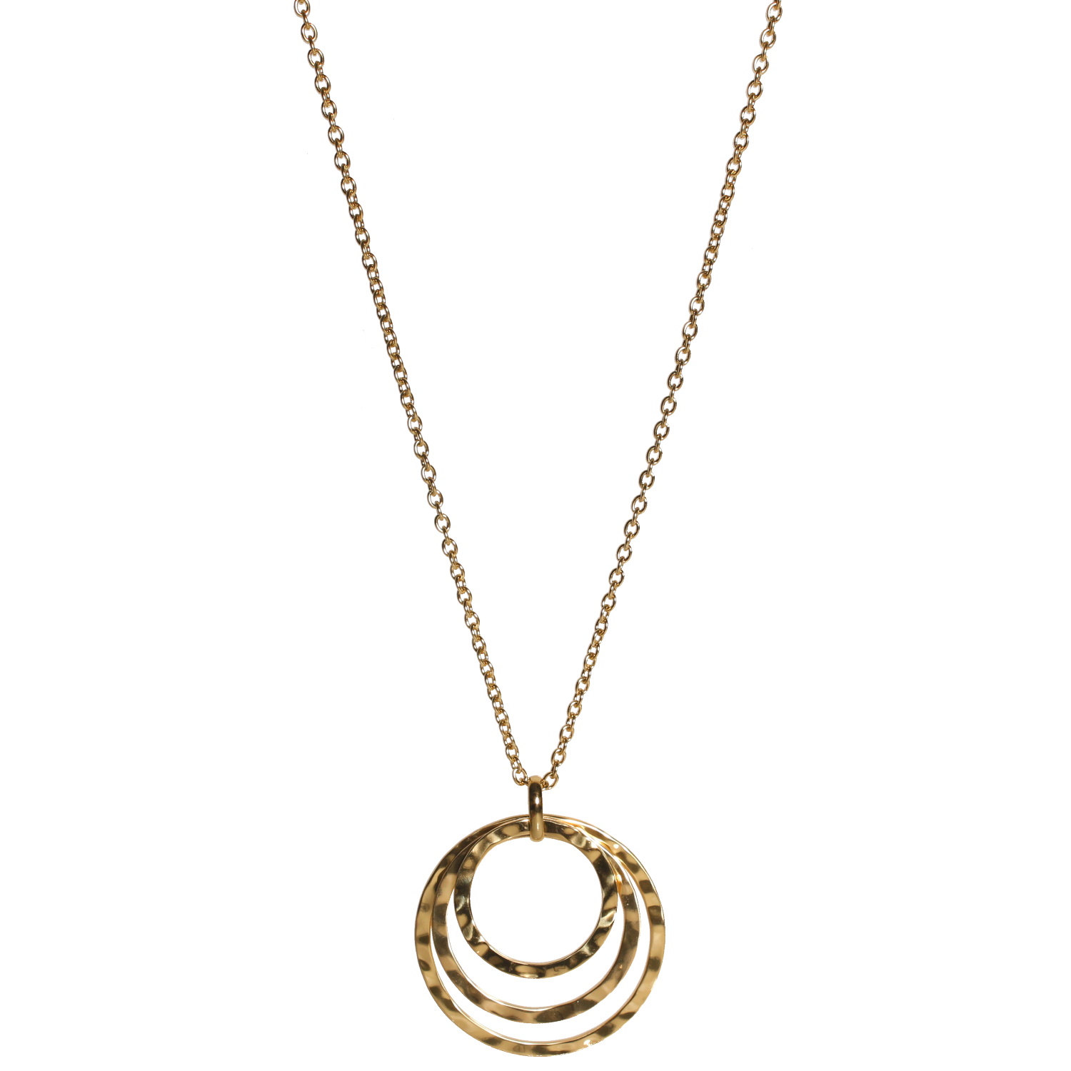 Description Collier sautoir composé d'une chaîne et d'un pendentif triple cercle. Fermoir mousqueton avec 4 cm de rallonge. Longueur 80+4 cm [Guide des tailles] Matière(s) Acier . L'acier utilisé dans la bijouterie existe sous plusieurs qualités. Nous utilisons principalement la qualité 316L, qualité qui est utilisée en chirurgie. Cet acier est donc inoxydable et reste très résistant. Fermoir Mousqueton À noter Pendentif 62 mm de diamètre Couleur(s) dominante(s) Doré Public Adolescent , Adulte . Genre Femme , Fille . Saison Indémodable . Cliquez sur une matière, un thème, une couleur ou une collection pour voir tous les articles associés.