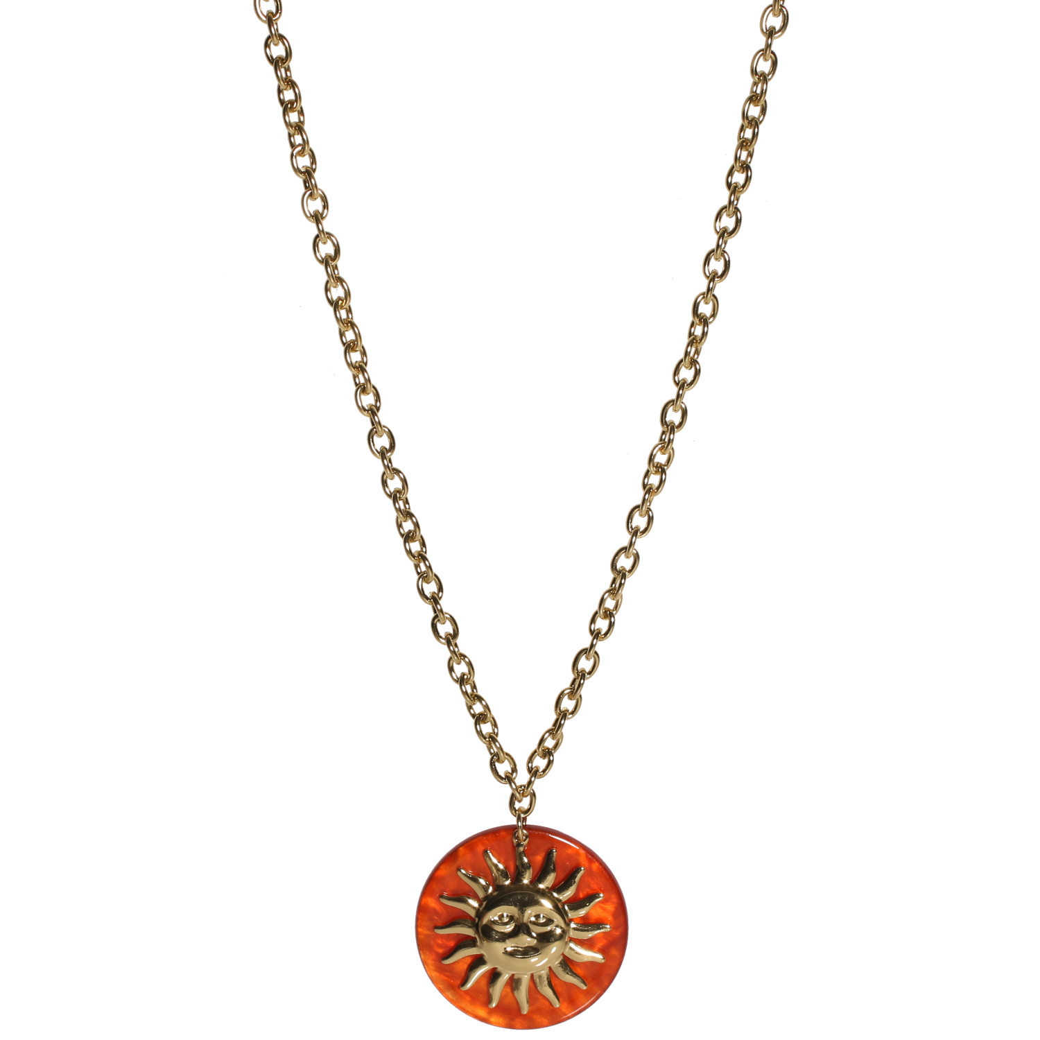 Description Collier sautoir composé d'une chaîne et d'un pendentif en forme d'un soleil et d'une pastille orange. Fermoir mousqueton avec 4 cm de rallonge. Longueur 80+4 cm [Guide des tailles] Matière(s) Acier , Résine . L'acier utilisé dans la bijouterie existe sous plusieurs qualités. Nous utilisons principalement la qualité 316L, qualité qui est utilisée en chirurgie. Cet acier est donc inoxydable et reste très résistant. Fermoir Mousqueton À noter Pendentif 46 mm de diamètre Couleur(s) dominante(s) Doré , Orange Public Adolescent , Adulte . Genre Femme , Fille . Saison Indémodable . Thème(s) Nature . Cliquez sur une matière, un thème, une couleur ou une collection pour voir tous les articles associés.