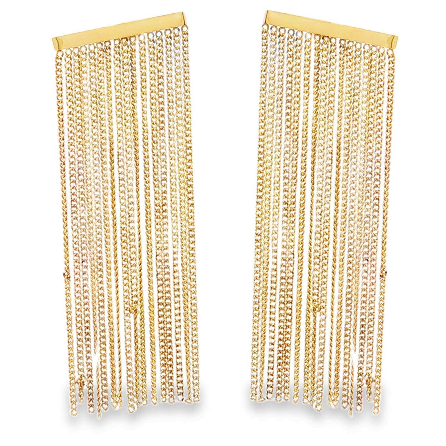 Description Sublimes boucles d'oreilles pendantes en acier doré, un accessoire de mode qui apporte éclat et mouvement à votre allure. Ces bijoux précieux, finement travaillés, reflètent une élégance intemporelle et un savoir-faire exceptionnel, parfaits pour rehausser votre style avec une touche de luxe discret. Largeur 18 mm Hauteur 52 mm Matière(s) Acier . L'acier utilisé dans la bijouterie existe sous plusieurs qualités. Nous utilisons principalement la qualité 316L, qualité qui est utilisée en chirurgie. Cet acier est donc inoxydable et reste très résistant. Fermoir Tiges poussettes Couleur(s) dominante(s) Doré Public Adolescent , Adulte . Genre Femme , Fille . Saison Indémodable . Cliquez sur une matière, un thème, une couleur ou une collection pour voir tous les articles associés.