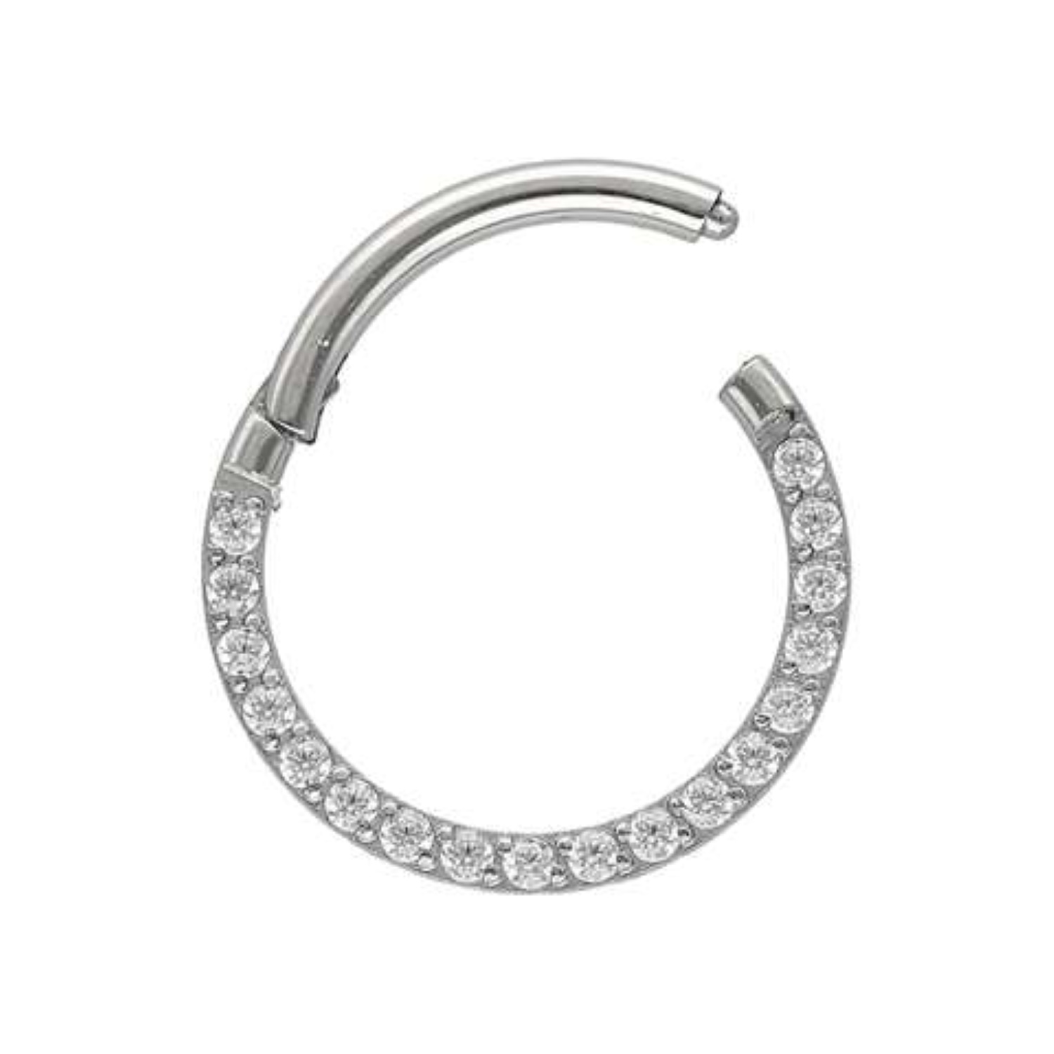 Piercing pour nez ou oreille en acier chirurgical argenté serti d'oxydes de zirconium blancs.