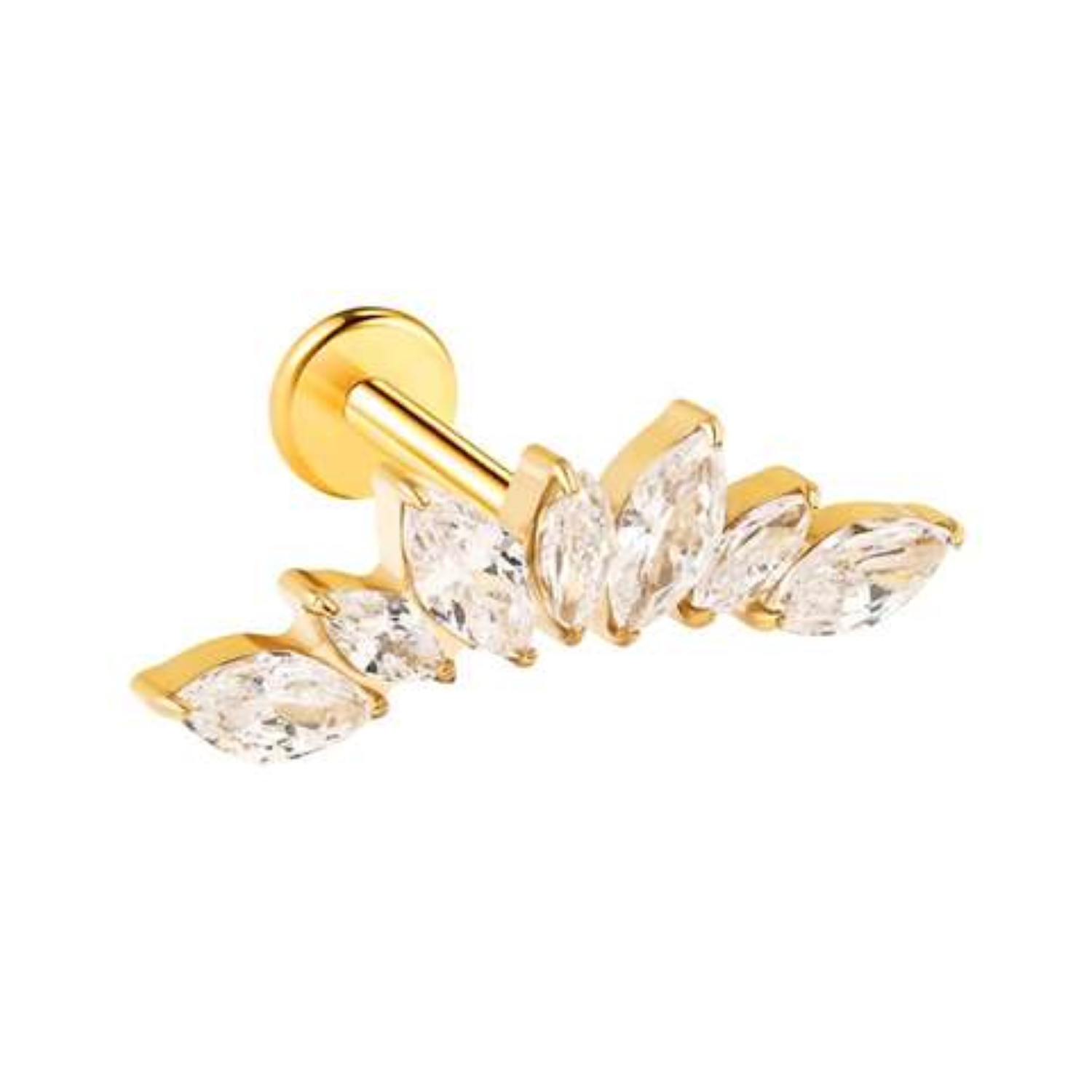 Description Piercing en acier chirurgical doré orné de cristaux. Longueur 7 mm [Guide des tailles] Largeur 17 mm Diamètre 1.2 mm Matière(s) Acier , Verre . L'acier utilisé dans la bijouterie existe sous plusieurs qualités. Nous utilisons principalement la qualité 316L, qualité qui est utilisée en chirurgie. Cet acier est donc inoxydable et reste très résistant. Fermoir A vis Couleur(s) dominante(s) Doré Public Adolescent , Adulte . Genre Femme , Fille . Saison Indémodable . Cliquez sur une matière, un thème, une couleur ou une collection pour voir tous les articles associés.