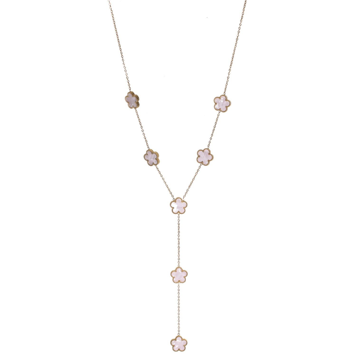 Description Collier sautoir de forme Y en acier doré et fleurs serties d'une pierre blanche. Cliquez sur une matière, un thème, une couleur ou une collection pour voir tous les articles associés.