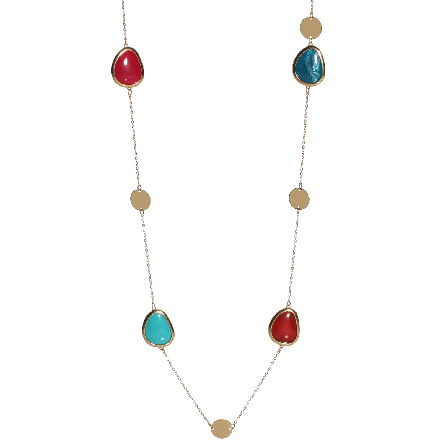 Description Collier sautoir en acier doré et pierres multicolores. Fermoir mousqueton avec 5 cm de rallonge. Cliquez sur une matière, un thème, une couleur ou une collection pour voir tous les articles associés.