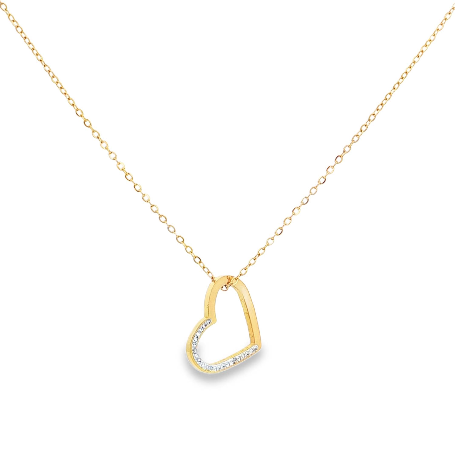 Description Ce collier délicat en acier doré arbore un pendentif en forme de cœur, serti de strass ronds taille brillant. La chaîne fine met en valeur le pendentif étincelant, créant un bijou raffiné et élégant, idéal pour exprimer votre amour et votre affection. Un cadeau parfait pour une occasion spéciale ou pour ajouter une touche de glamour à votre tenue quotidienne. Fermoir mousqueton avec 5 cm de rallonge. Cliquez sur une matière, un thème, une couleur ou une collection pour voir tous les articles associés.
