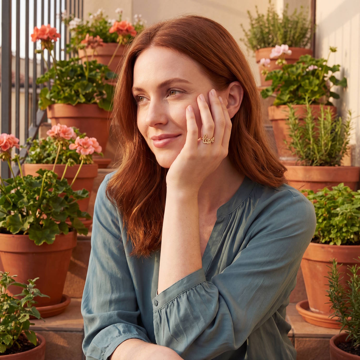 Exprimez vos sentiments avec élégance grâce à cette bague audacieuse qui marie romantisme et modernité. Conçue en acier inoxydable de haute qualité, elle offre un éclat doré durable qui résiste au ternissement quotidien.