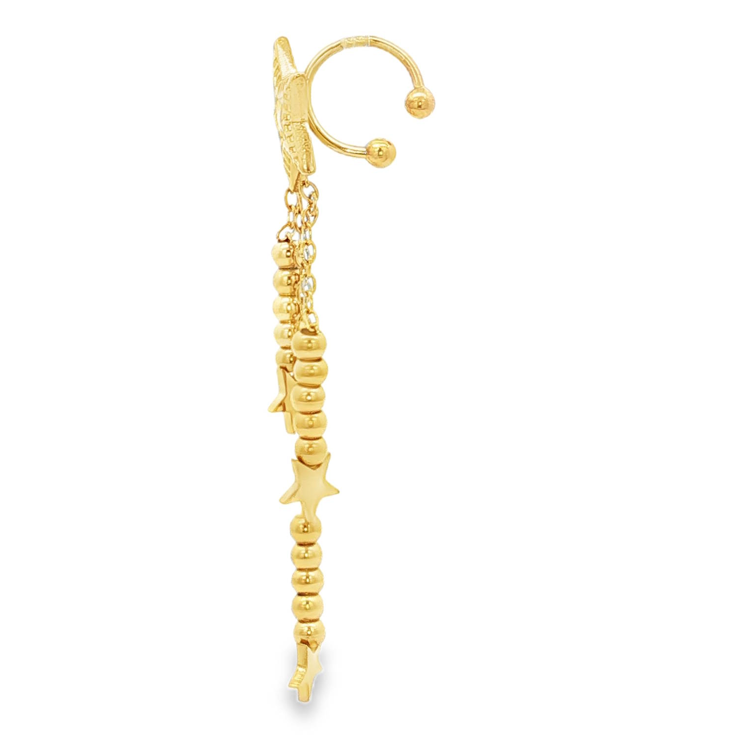 Description Voici une description de cette élégante bague d'oreille (ear cuff), idéale pour un look céleste et bohème. Ce bijou d'oreille se distingue par son motif central en forme d'étoile texturée, aux détails finement ciselés qui capturent la lumière. De cette étoile principale s'écoulent trois délicates chaînes de longueurs asymétriques, créant un effet de cascade dynamique et raffiné. Le bijou est doté d'un anneau ouvert ajustable terminé par deux petites billes. Ce système permet de pincer délicatement le bord de l'oreille (hélix) pour un maintien sûr et confortable tout au long de la journée. Largeur 12 mm Hauteur 55 mm Diamètre 8 mm Matière(s) Acier . L'acier utilisé dans la bijouterie existe sous plusieurs qualités. Nous utilisons principalement la qualité 316L, qualité qui est utilisée en chirurgie. Cet acier est donc inoxydable et reste très résistant. Fermoir Aucun Couleur(s) dominante(s) Doré Public Adolescent , Adulte . Genre Femme , Fille . Saison Indémodable . Thème(s) Nature . Cliquez sur une matière, un thème, une couleur ou une collection pour voir tous les articles associés.