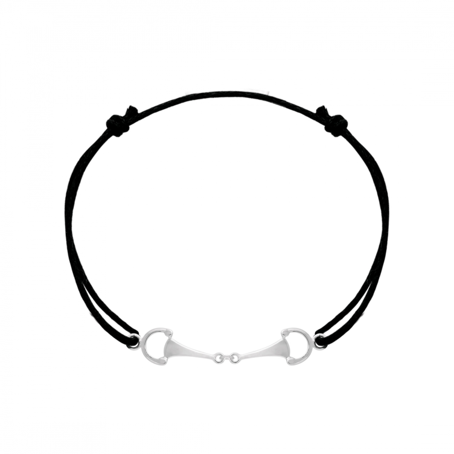 Bracelet composé d'un cordon en coton noir et de mors en argent 925/000 rhodié.