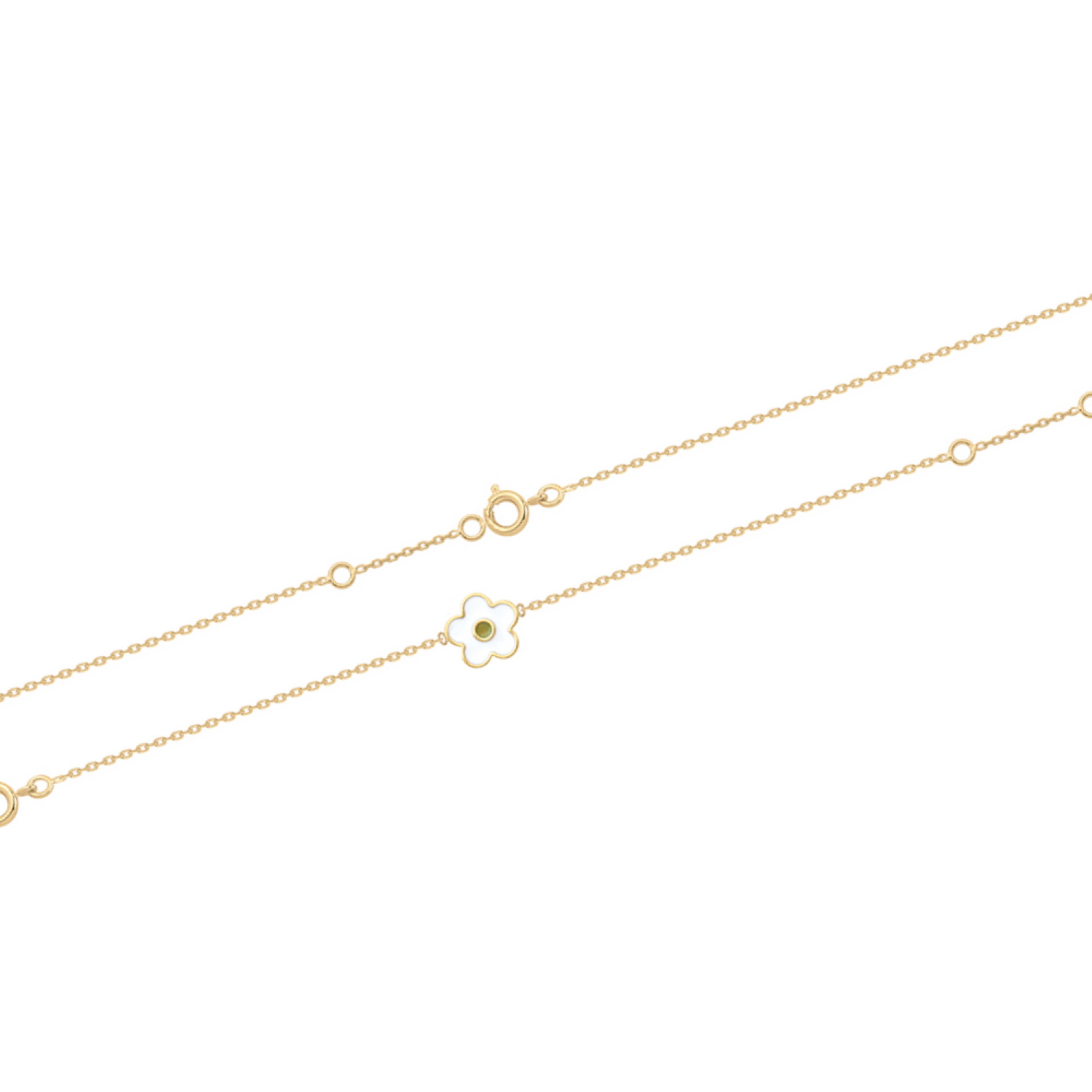 Bracelet composé d'une chaîne en plaqué or jaune 18 carats et d'une fleur pavée d'émail blanc.<br/>Fermoir anneau ressort avec anneaux de rappel à 13 et 15 cm.  Adolescent Adulte Enfant Fille Fleurs Indémodable Nature Bracelet composé d'une chaîne en plaqué or jaune 18 carats et d'une fleur pavée d'émail blanc.<br/>Fermoir anneau ressort avec anneaux de rappel à 13 et 15 cm.  Adolescent Adulte Enfant Fille Fleurs Indémodable Nature