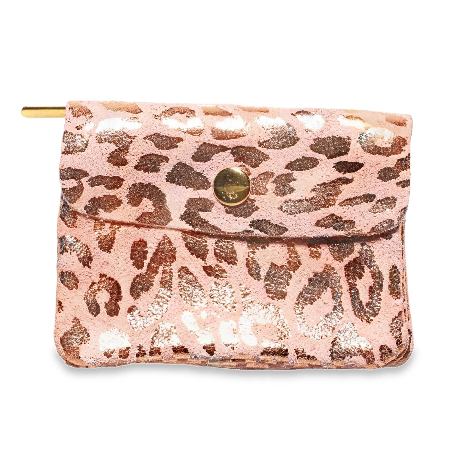 Ce porte-monnaie allie un style audacieux et une organisation pratique dans un format compact. Conçu avec une texture effet daim ou cuir retourné, il arbore un imprimé léopard scintillant qui apporte une touche de glamour à vos accessoires quotidiens.
