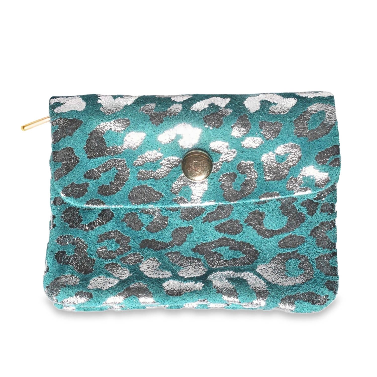 Description Ce porte-monnaie se distingue par son allure audacieuse et moderne. Il arbore un motif léopard revisité, où les taches animales sont réalisées dans une finition argentée métallisée sur un fond bleu turquoise profond. Cliquez sur une matière, un thème, une couleur ou une collection pour voir tous les articles associés.