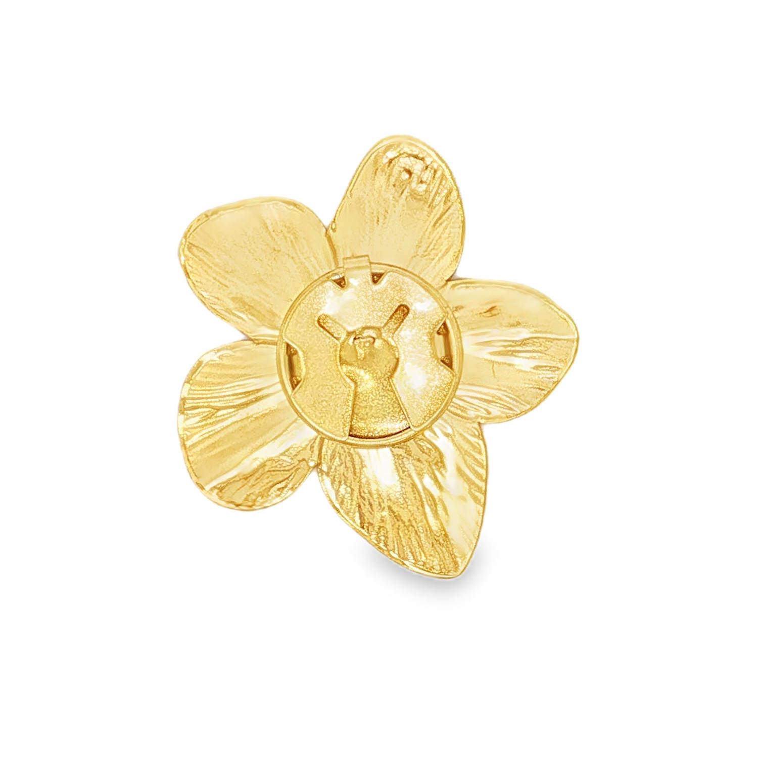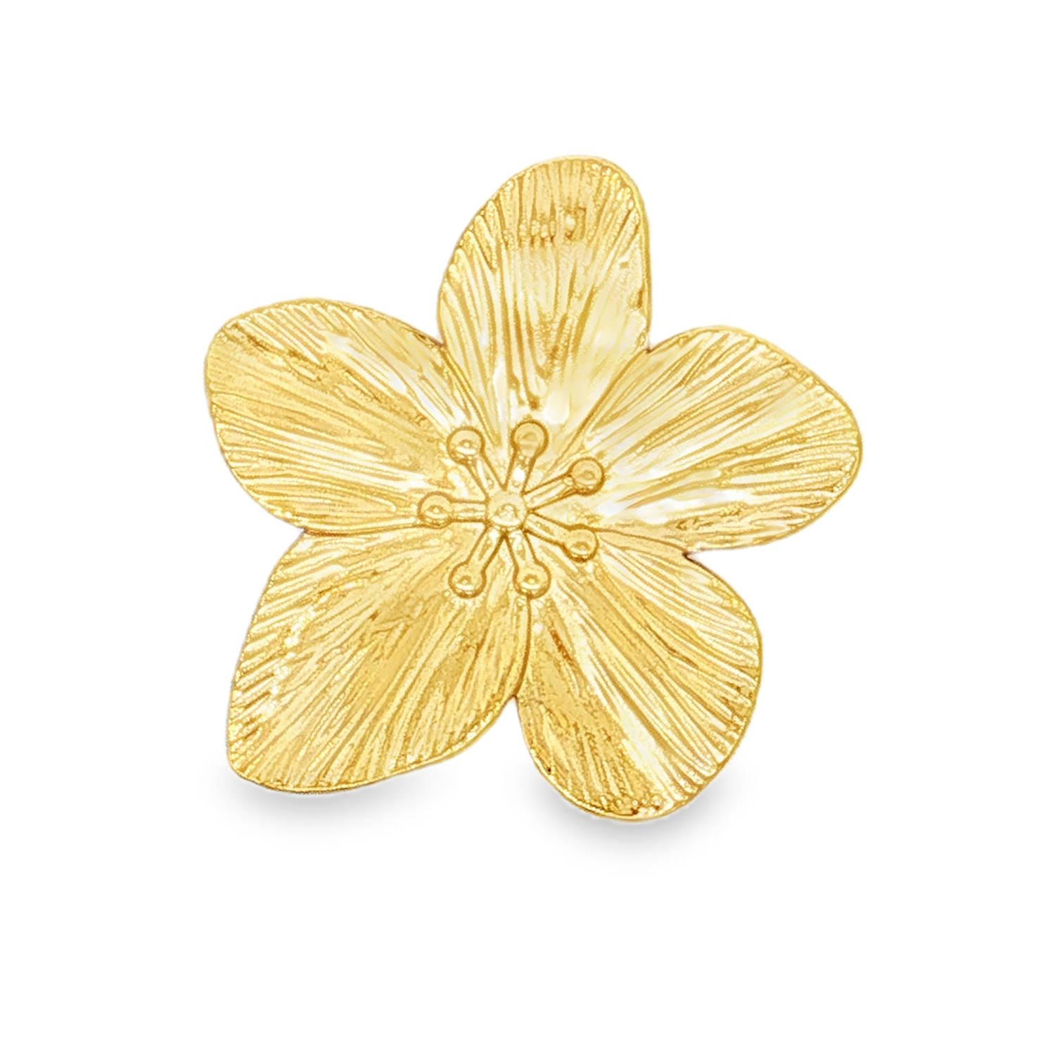 Une superbe fleur à cinq pétales, inspirée du jasmin ou du cerisier, présentant des nervures finement ciselées qui accrochent la lumière pour un éclat naturel.