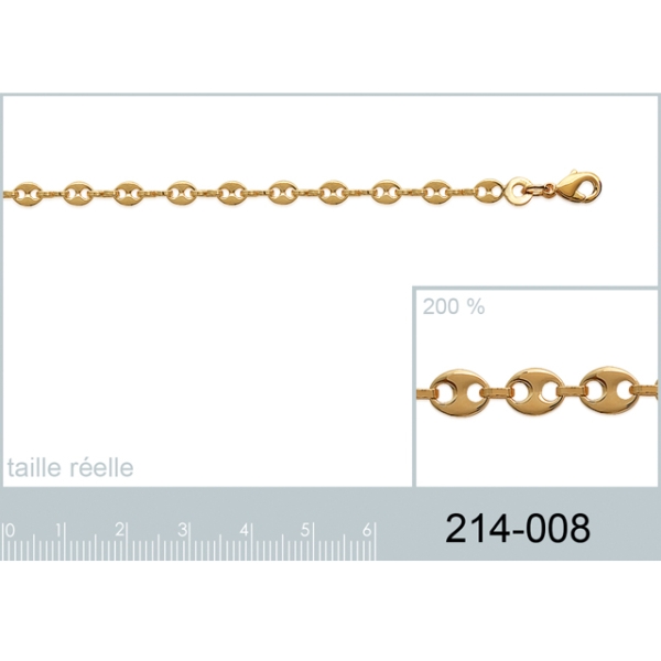 Description Chaîne en plaqué-or. Maille grains de café. Attache soudée. Fermoir mousqueton. À noter Longueur 80 cm Public Genre Saison Rayon en magasin T126 Cliquez sur une matière, un thème, une couleur ou une collection pour voir tous les articles associés.