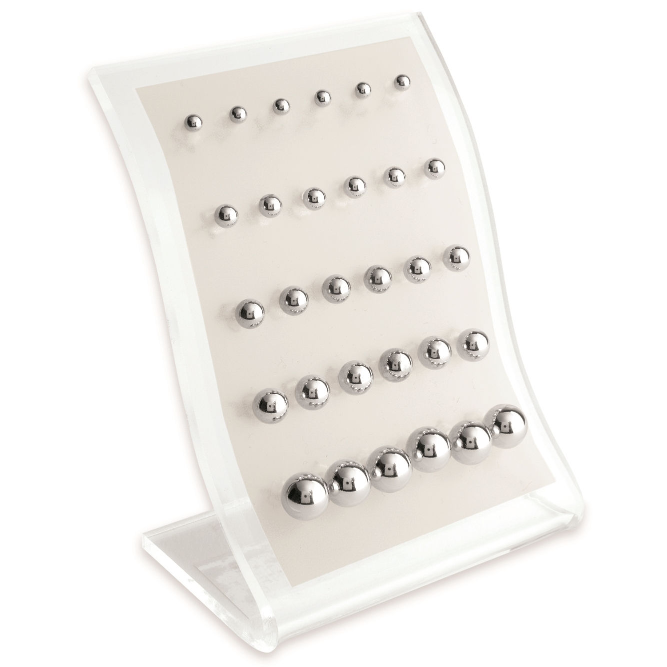 Description Présentoir contenant 15 paires de boucles d'oreilles en argent 925/000 rhodié. Diamètre 3/4/5/6/8 mm [Guide des tailles] Matière(s) Argent 925 rhodié . Afin de protéger votre bijou de l'oxydation naturelle de l'argent, il est recouvert d'une couche de rhodium (un métal rare et précieux) qui garantira sa brillance dans le temps et préviendra les risques d'allergie. Notez cependant, que le bijou est alors d'une teinte plus grisée et moins brillante que l'argent non rhodié. Poids d'argent 14,13 gramme(s) Fermoir Tiges poussettes Couleur(s) dominante(s) Argenté Public Adulte , Enfant . Genre Femme , Fille , Garçon , Homme , Mixte . Saison Indémodable . Cliquez sur une matière, un thème, une couleur ou une collection pour voir tous les articles associés.
