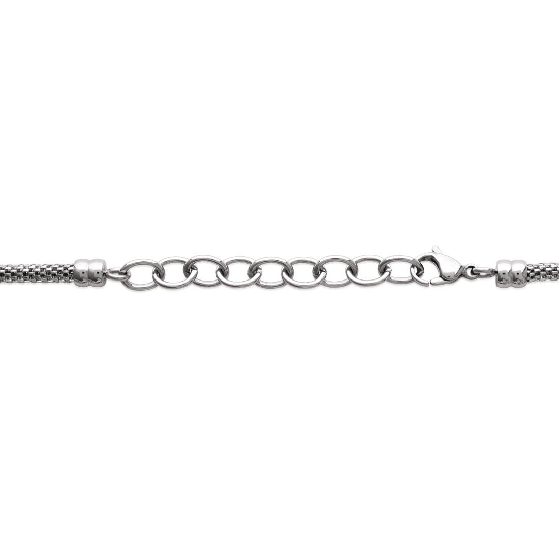 Description Bracelet en acier. Longueur 18/19 cm [Guide des tailles] Largeur 7 mm Matière(s) Acier . L'acier utilisé dans la bijouterie existe sous plusieurs qualités. Nous utilisons principalement la qualité 316L, qualité qui est utilisée en chirurgie. Cet acier est donc inoxydable et reste très résistant. Fermoir Mousqueton Couleur(s) dominante(s) Argenté Public Adulte . Genre Femme . Saison Indémodable . Rayon en magasin T17 Cliquez sur une matière, un thème, une couleur ou une collection pour voir tous les articles associés.