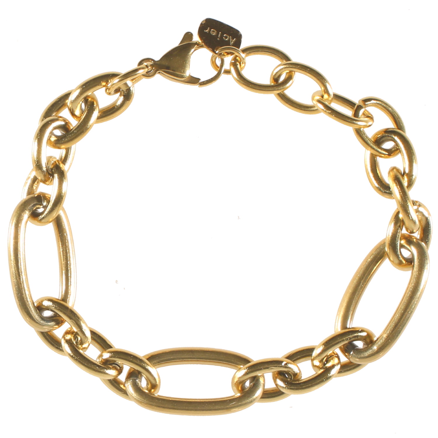 Description Bracelet grosse chaîne en acier doré. Longueur 19 cm [Guide des tailles] Largeur 12 mm Matière(s) Acier . L'acier utilisé dans la bijouterie existe sous plusieurs qualités. Nous utilisons principalement la qualité 316L, qualité qui est utilisée en chirurgie. Cet acier est donc inoxydable et reste très résistant. Fermoir Mousqueton Couleur(s) dominante(s) Doré Public Adolescent , Adulte . Genre Femme , Fille . Saison Indémodable . Cliquez sur une matière, un thème, une couleur ou une collection pour voir tous les articles associés.