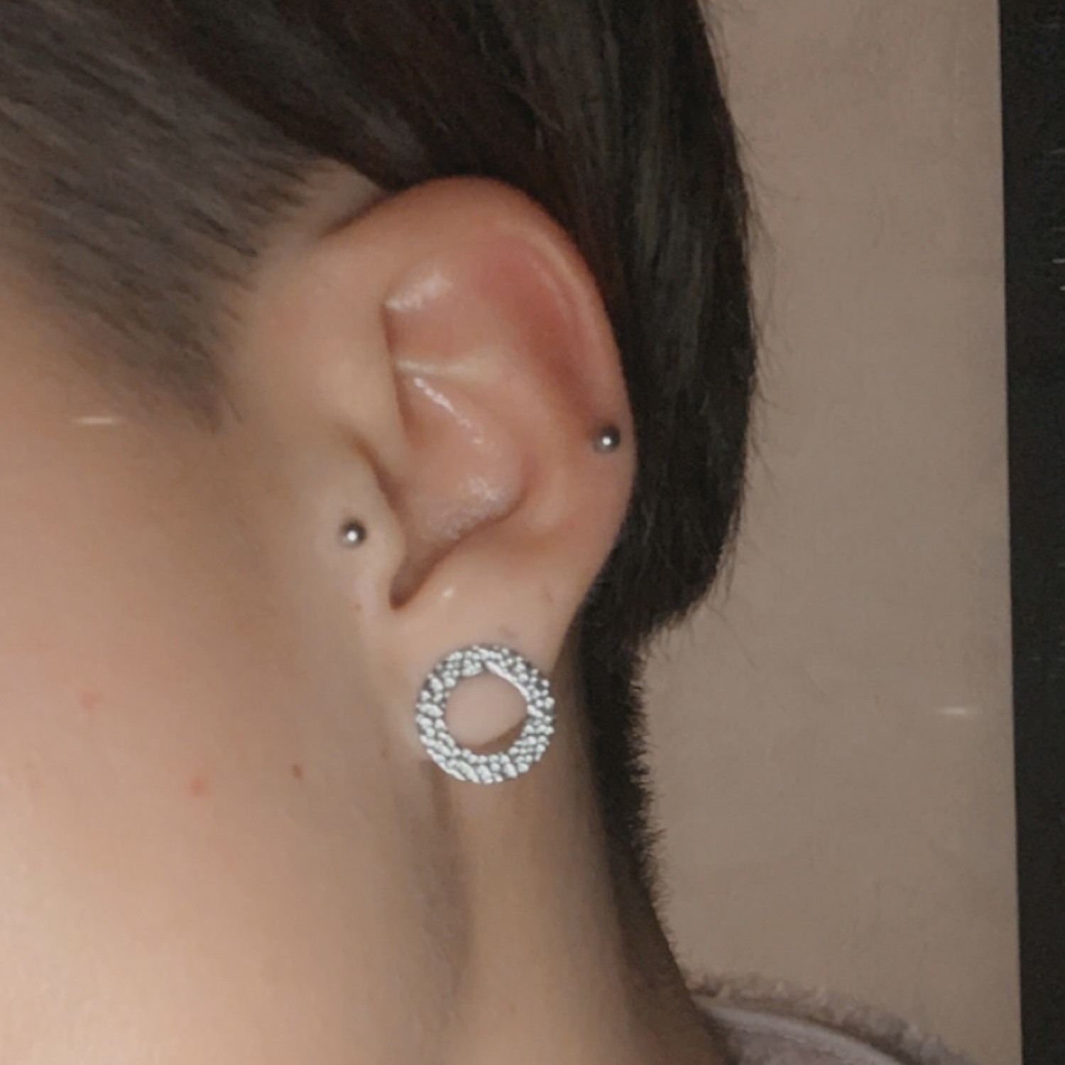 Description Boucles d'oreilles composées d'un cercle martelé en acier 316L argenté. Diamètre 15 mm [Guide des tailles] Matière(s) Acier . L'acier utilisé dans la bijouterie existe sous plusieurs qualités. Nous utilisons principalement la qualité 316L, qualité qui est utilisée en chirurgie. Cet acier est donc inoxydable et reste très résistant. Fermoir Tiges poussettes Couleur(s) dominante(s) Argenté Public Adolescent , Adulte . Genre Femme , Fille . Saison Indémodable . Cliquez sur une matière, un thème, une couleur ou une collection pour voir tous les articles associés.