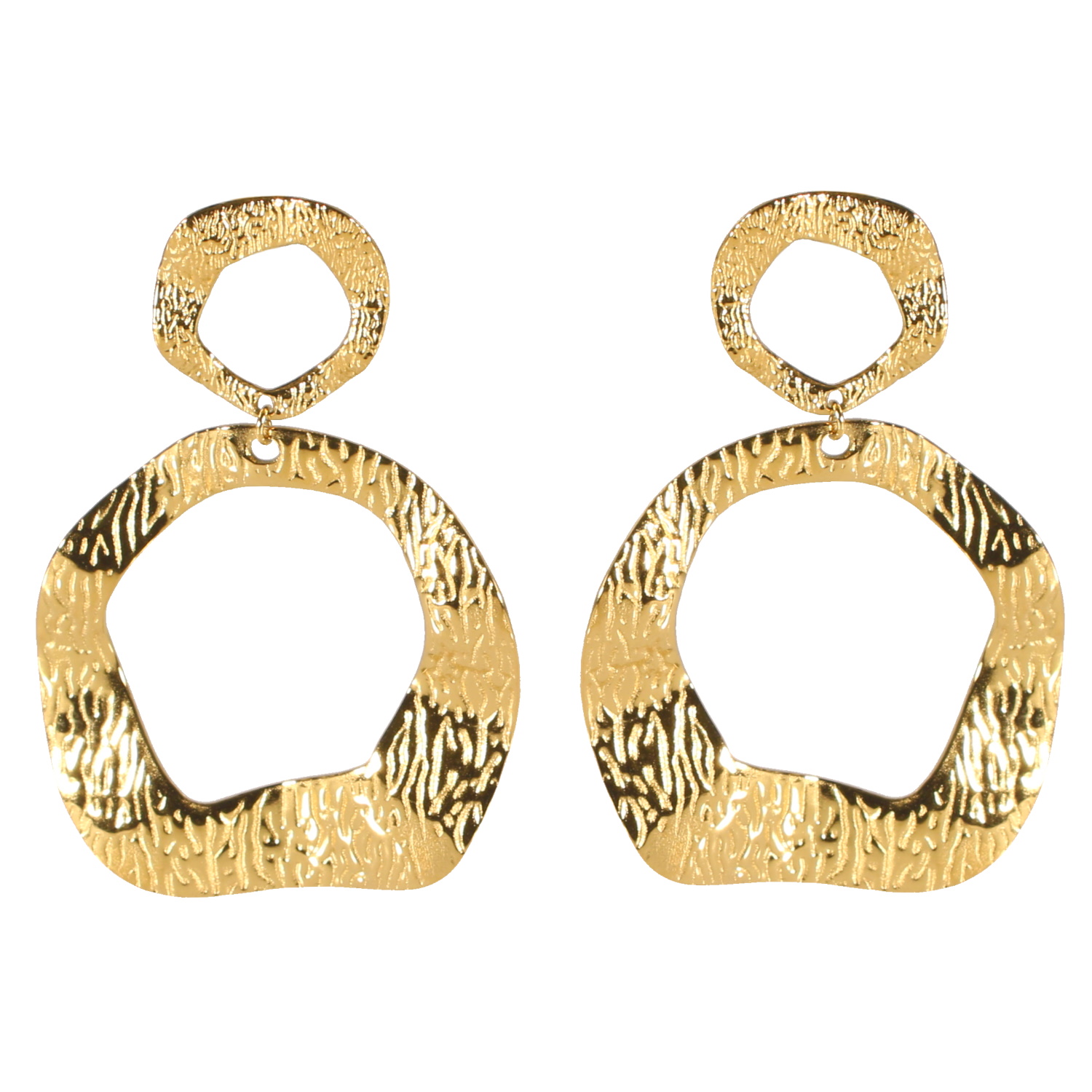 Description Boucles d'oreilles pendantes composées de deux cercles difformes en acier doré. Largeur 40 mm Hauteur 57 mm Matière(s) Acier . L'acier utilisé dans la bijouterie existe sous plusieurs qualités. Nous utilisons principalement la qualité 316L, qualité qui est utilisée en chirurgie. Cet acier est donc inoxydable et reste très résistant. Fermoir Tiges poussettes Couleur(s) dominante(s) Doré Public Adolescent , Adulte . Genre Femme , Fille . Saison Indémodable . Cliquez sur une matière, un thème, une couleur ou une collection pour voir tous les articles associés.