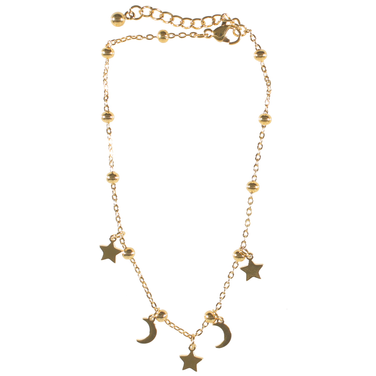 Description Bracelet chaîne de cheville avec pampilles étoiles et croissants de lune en acier doré. Fermoir mousqueton avec 3 cm de rallonge. Longueur 23+3 cm [Guide des tailles] Largeur 10 mm Matière(s) Acier . L'acier utilisé dans la bijouterie existe sous plusieurs qualités. Nous utilisons principalement la qualité 316L, qualité qui est utilisée en chirurgie. Cet acier est donc inoxydable et reste très résistant. Fermoir Mousqueton Couleur(s) dominante(s) Doré Public Adolescent , Adulte . Genre Femme , Fille . Saison Indémodable . Thème(s) Nature . Cliquez sur une matière, un thème, une couleur ou une collection pour voir tous les articles associés.