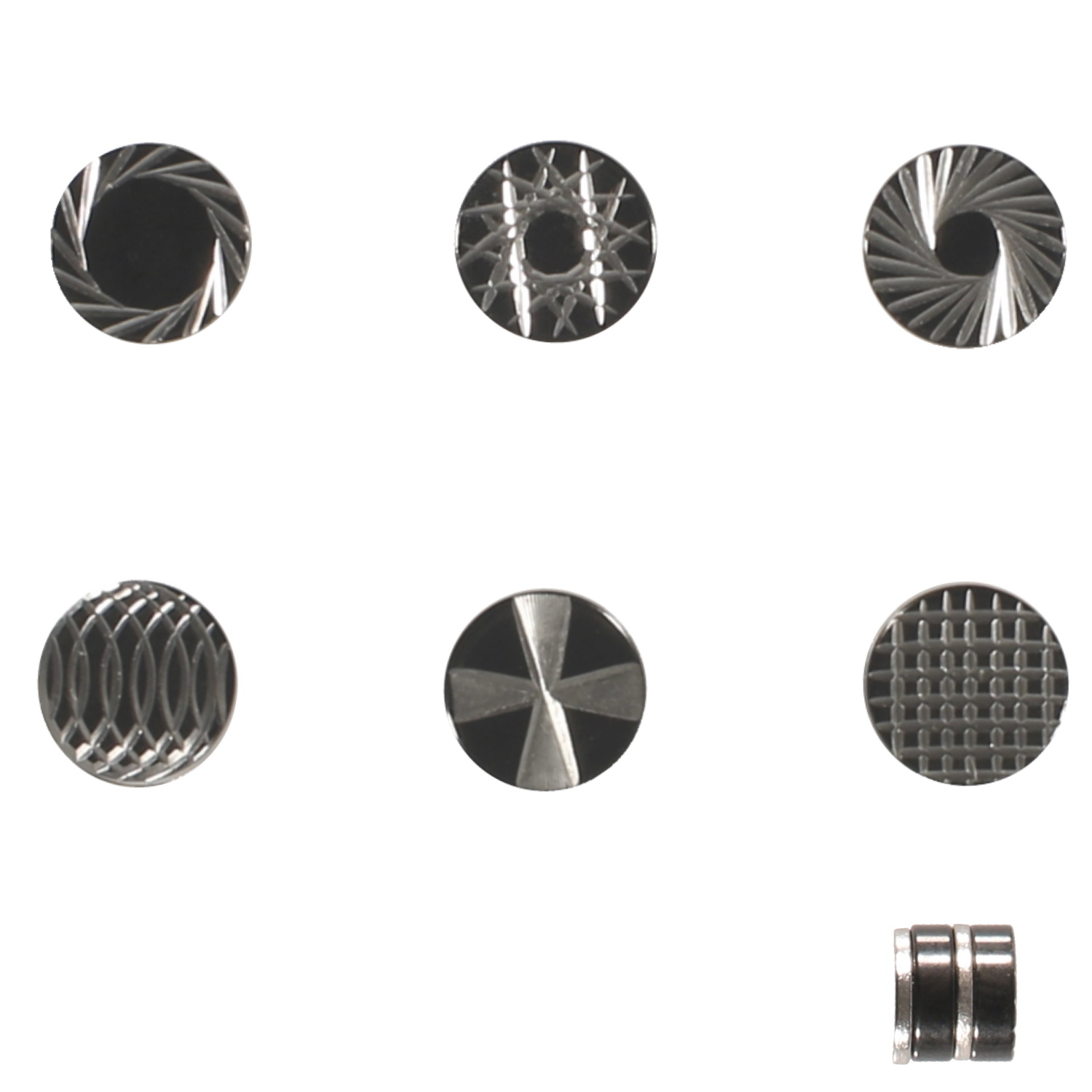 Boucles d'oreilles puces rondes aimants avec motifs en acier chirurgical 316L argenté.