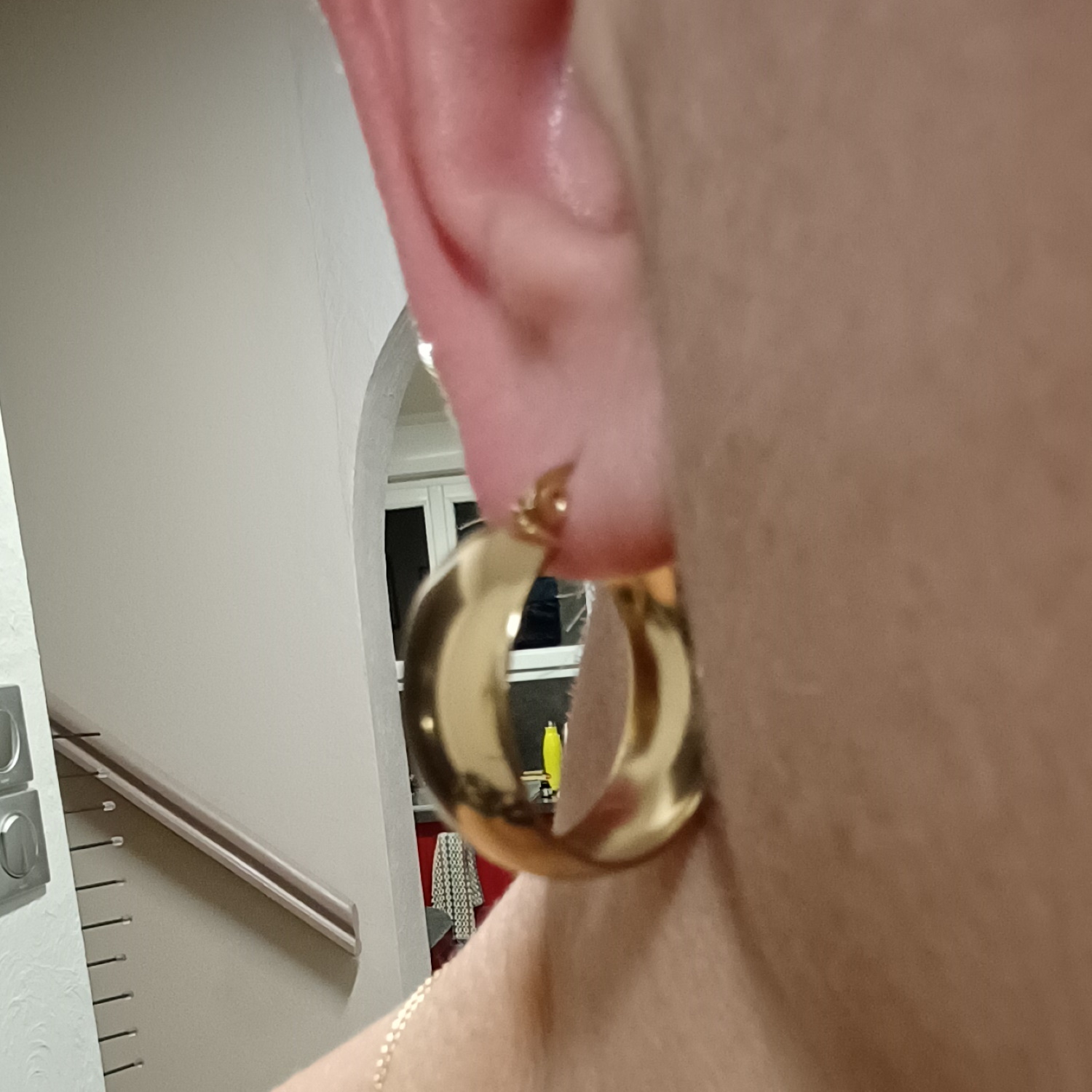 Description Boucles d'oreilles créoles larges en acier doré. Largeur 9 mm Diamètre 20 mm [Guide des tailles] Matière(s) Acier . L'acier utilisé dans la bijouterie existe sous plusieurs qualités. Nous utilisons principalement la qualité 316L, qualité qui est utilisée en chirurgie. Cet acier est donc inoxydable et reste très résistant. Fermoir Charnière Couleur(s) dominante(s) Doré Public Adolescent , Adulte . Genre Femme , Fille . Saison Indémodable . Cliquez sur une matière, un thème, une couleur ou une collection pour voir tous les articles associés.