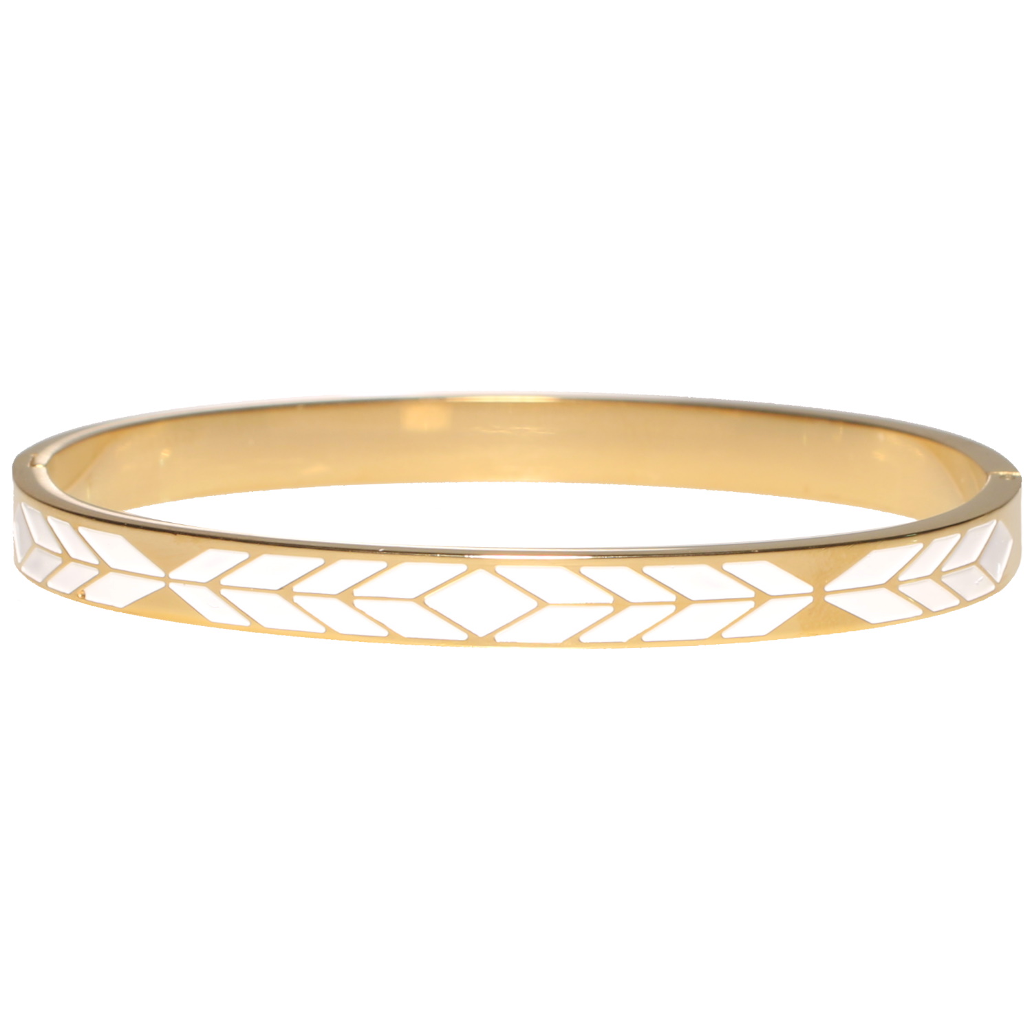 Description Bracelet jonc rigide fermé en acier doré pavé de motifs flèches en émail de couleur blanc. Largeur 6 mm Diamètre 58 mm [Guide des tailles] Matière(s) Acier , Email . L'acier utilisé dans la bijouterie existe sous plusieurs qualités. Nous utilisons principalement la qualité 316L, qualité qui est utilisée en chirurgie. Cet acier est donc inoxydable et reste très résistant. Fermoir Charnière Couleur(s) dominante(s) Blanc , Doré Public Adolescent , Adulte . Genre Femme , Fille . Saison Indémodable . Rayon en magasin TA Cliquez sur une matière, un thème, une couleur ou une collection pour voir tous les articles associés.