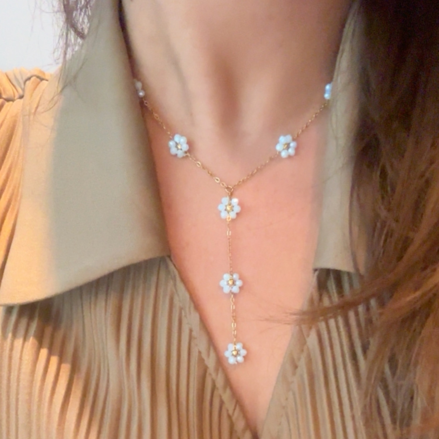 Description Collier de forme Y composé d'une chaîne en acier doré et de fleurs en perles de couleur bleue turquoise. Fermoir mousqueton avec 4 cm de rallonge. Longueur 38+4 cm [Guide des tailles] Largeur 9 mm Hauteur 75 mm Matière(s) Acier , Verre . L'acier utilisé dans la bijouterie existe sous plusieurs qualités. Nous utilisons principalement la qualité 316L, qualité qui est utilisée en chirurgie. Cet acier est donc inoxydable et reste très résistant. Fermoir Mousqueton Couleur(s) dominante(s) Bleu , Doré Public Adolescent , Adulte . Genre Femme , Fille . Saison Indémodable . Thème(s) Fleurs , Nature . Cliquez sur une matière, un thème, une couleur ou une collection pour voir tous les articles associés.