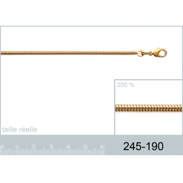 Description Chaîne en plaqué-or. Maille serpent. Fermoir mousqueton. À noter Longueur 40 cm Public Genre Saison Rayon en magasin I100 Cliquez sur une matière, un thème, une couleur ou une collection pour voir tous les articles associés.