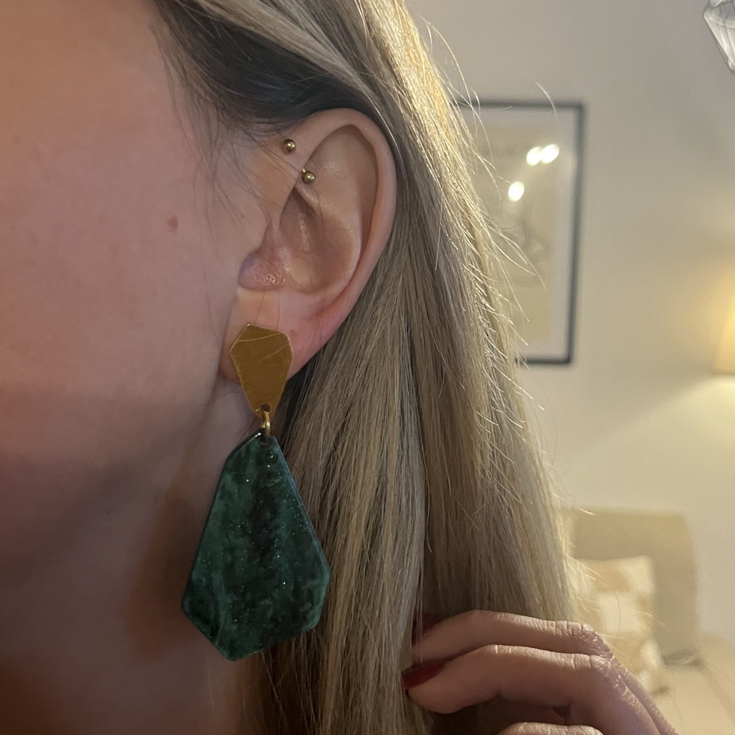 Description Boucles d'oreilles pendantes composées d'une pastille en acier doré et d'un pendant de couleur vert. Largeur 32 mm Hauteur 70 mm Matière(s) Acier , Plastique . L'acier utilisé dans la bijouterie existe sous plusieurs qualités. Nous utilisons principalement la qualité 316L, qualité qui est utilisée en chirurgie. Cet acier est donc inoxydable et reste très résistant. Fermoir Tiges poussettes Couleur(s) dominante(s) Doré , Vert Public Adolescent , Adulte . Genre Femme , Fille . Saison Indémodable . Cliquez sur une matière, un thème, une couleur ou une collection pour voir tous les articles associés.